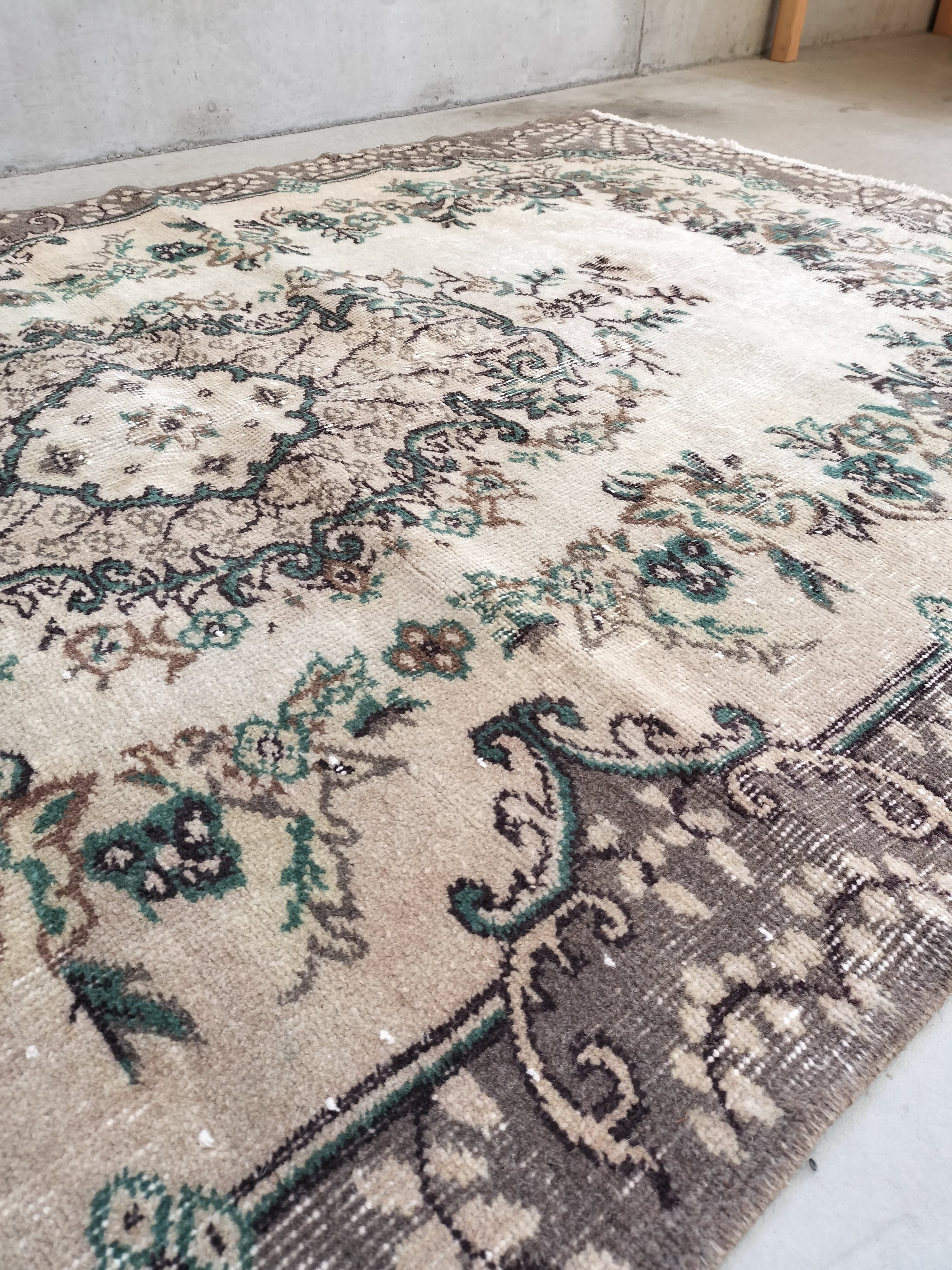 1980年代に織られたヴィンテージのトルコラグ。オーガニックウール、オーガニックコットン(裏糸)を使い、自然染料及び野菜染料で色づけされています。