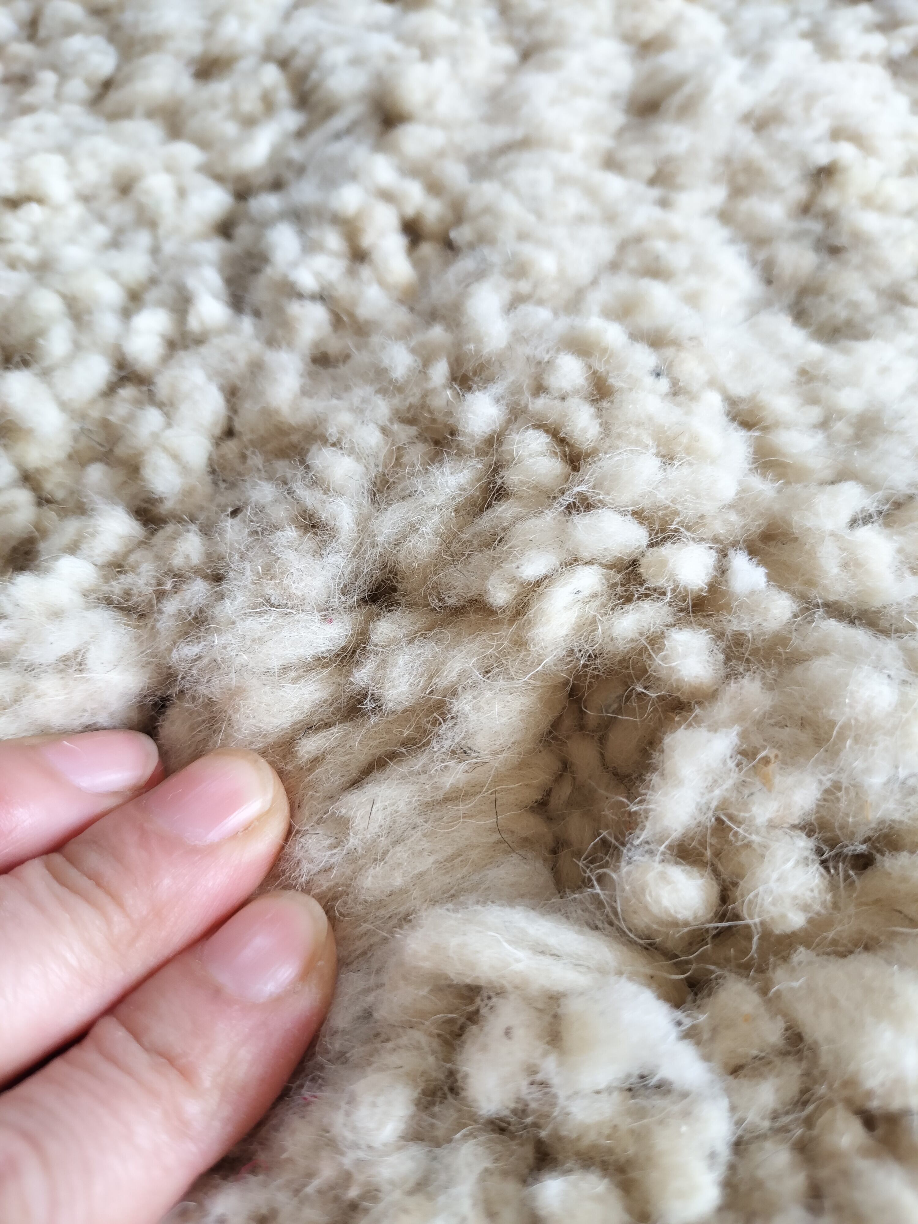 ウール100%のラグは吸湿性に優れており、アクリルなど化学繊維のラグと違い、冬は暖かく、夏はべたっとした触り心地ではなくサラッと気持ち良くお使いいただけるのが特徴です。