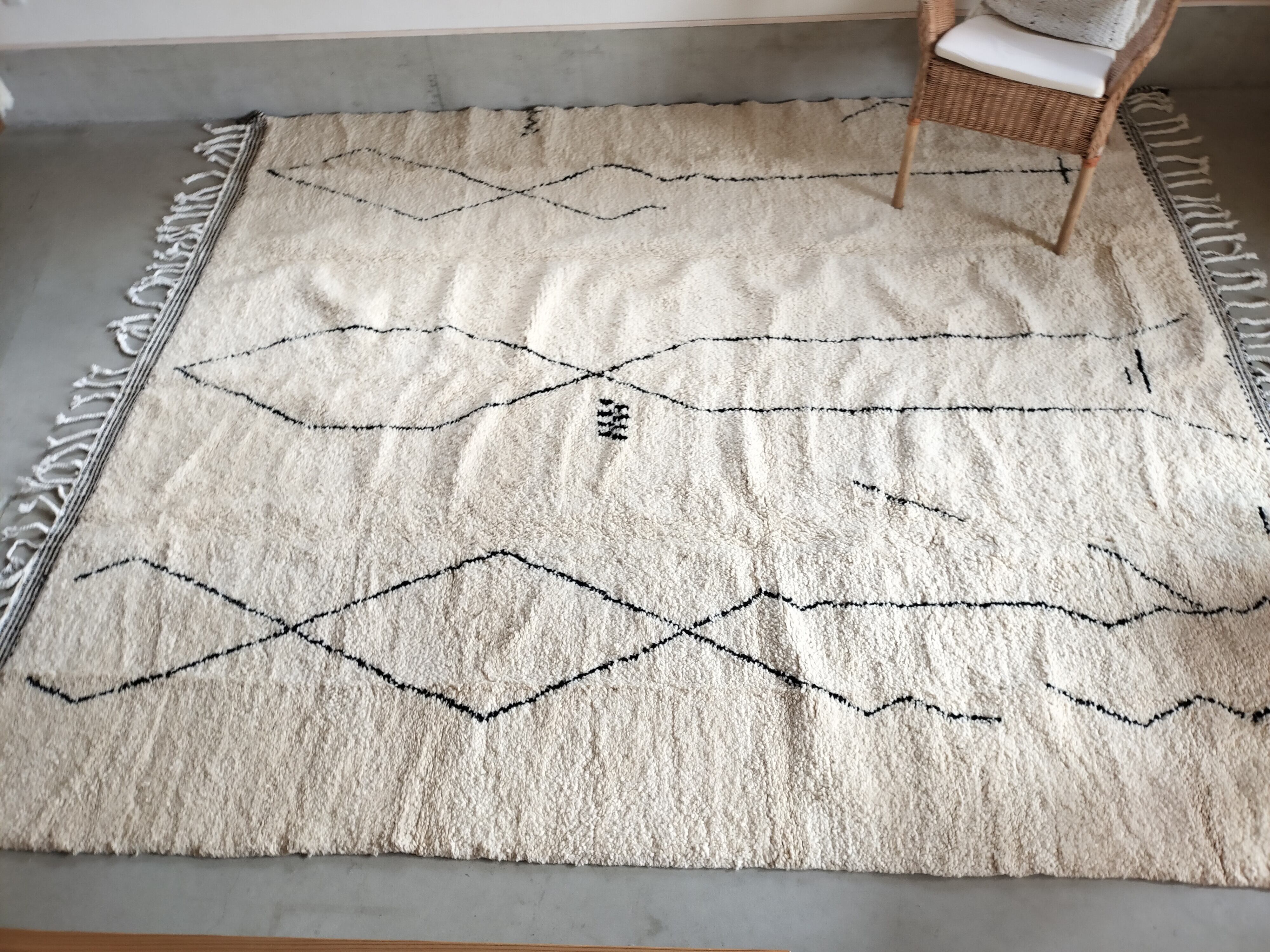 ベニワレンは、モロッコ北部に住むベルベル民族によって作られる手織りのラグです。高地アトラス山脈の良質なウールを紡ぎ、ベルベル民族の女性により一目一目織られています。