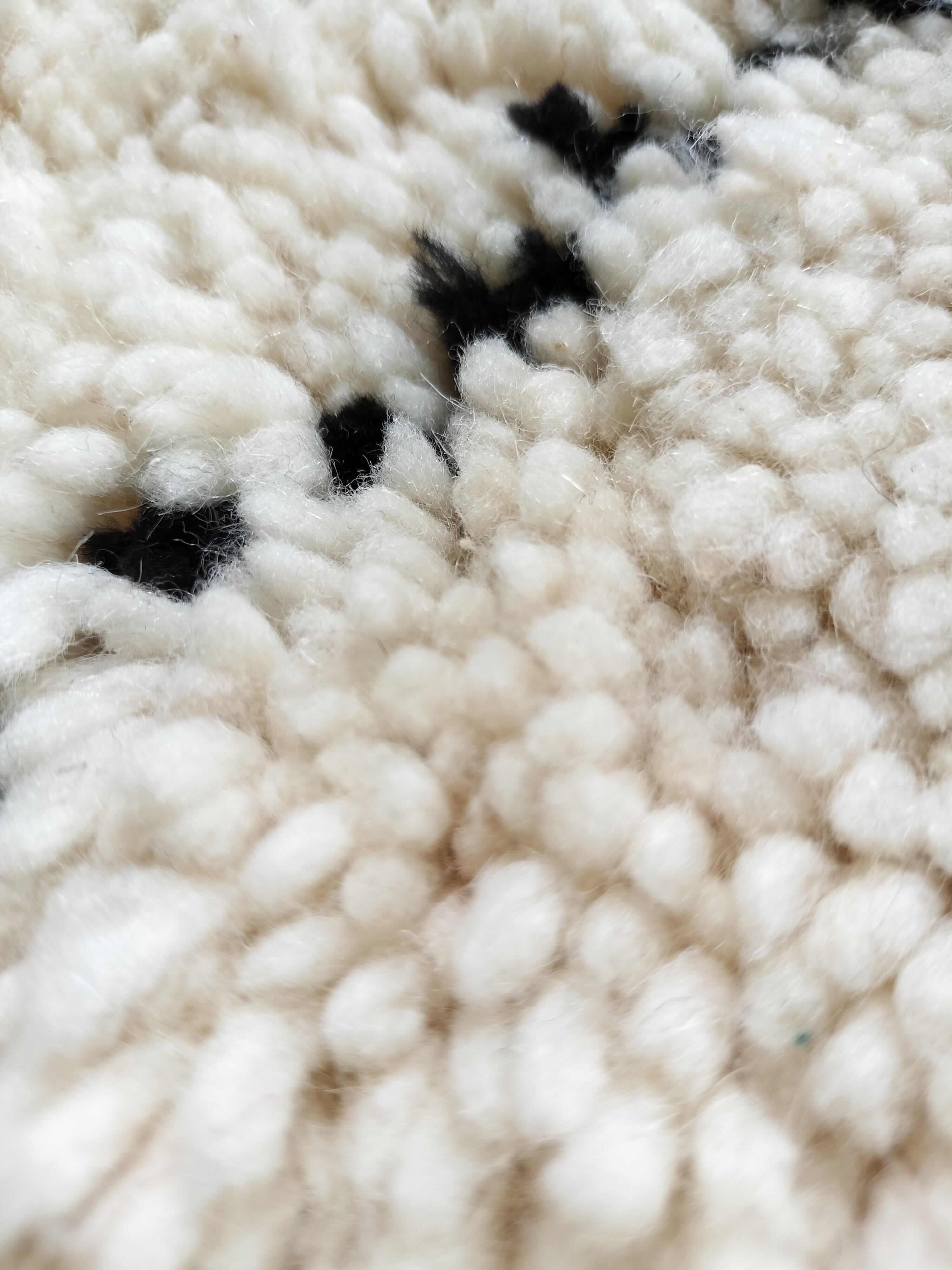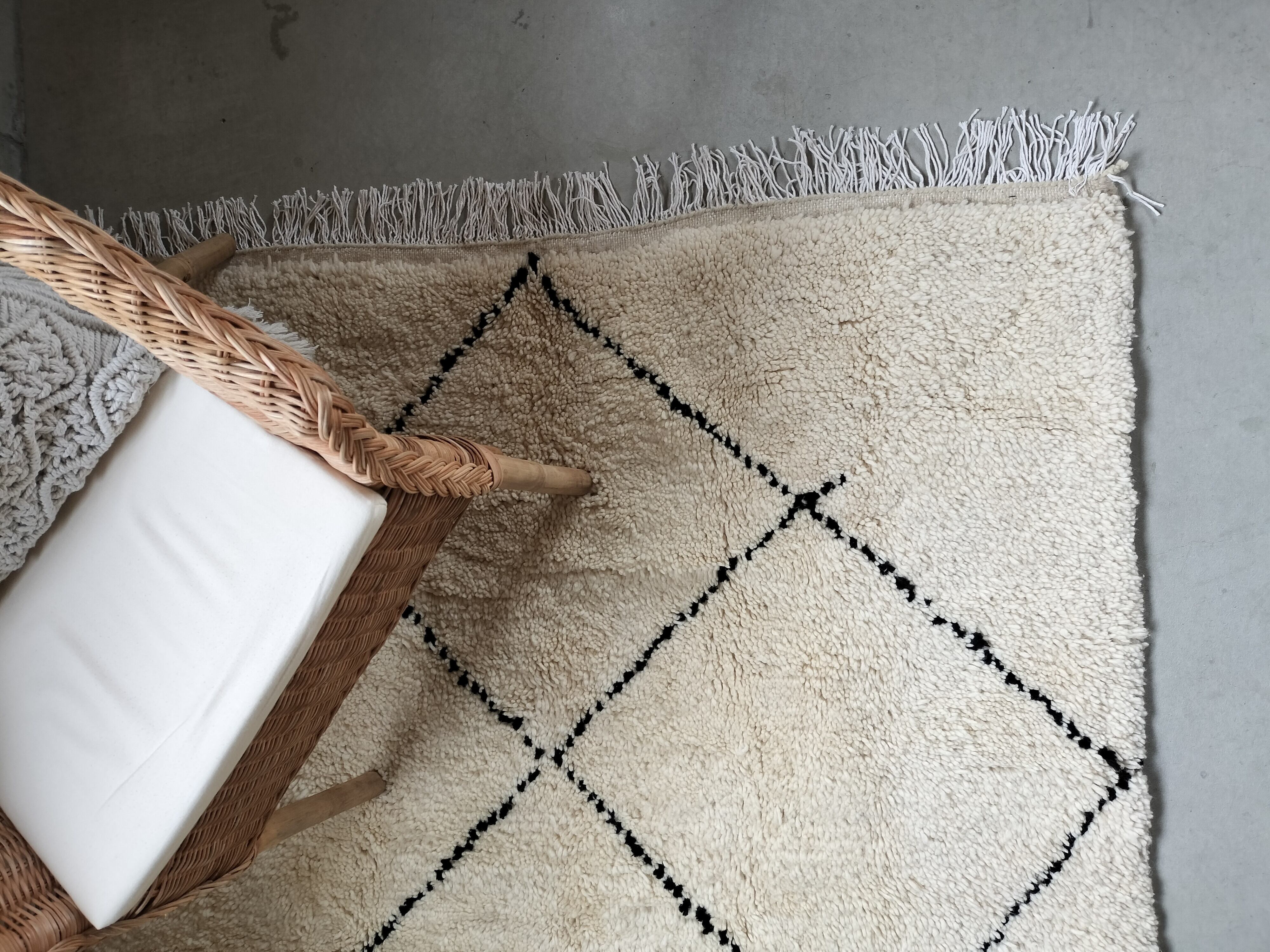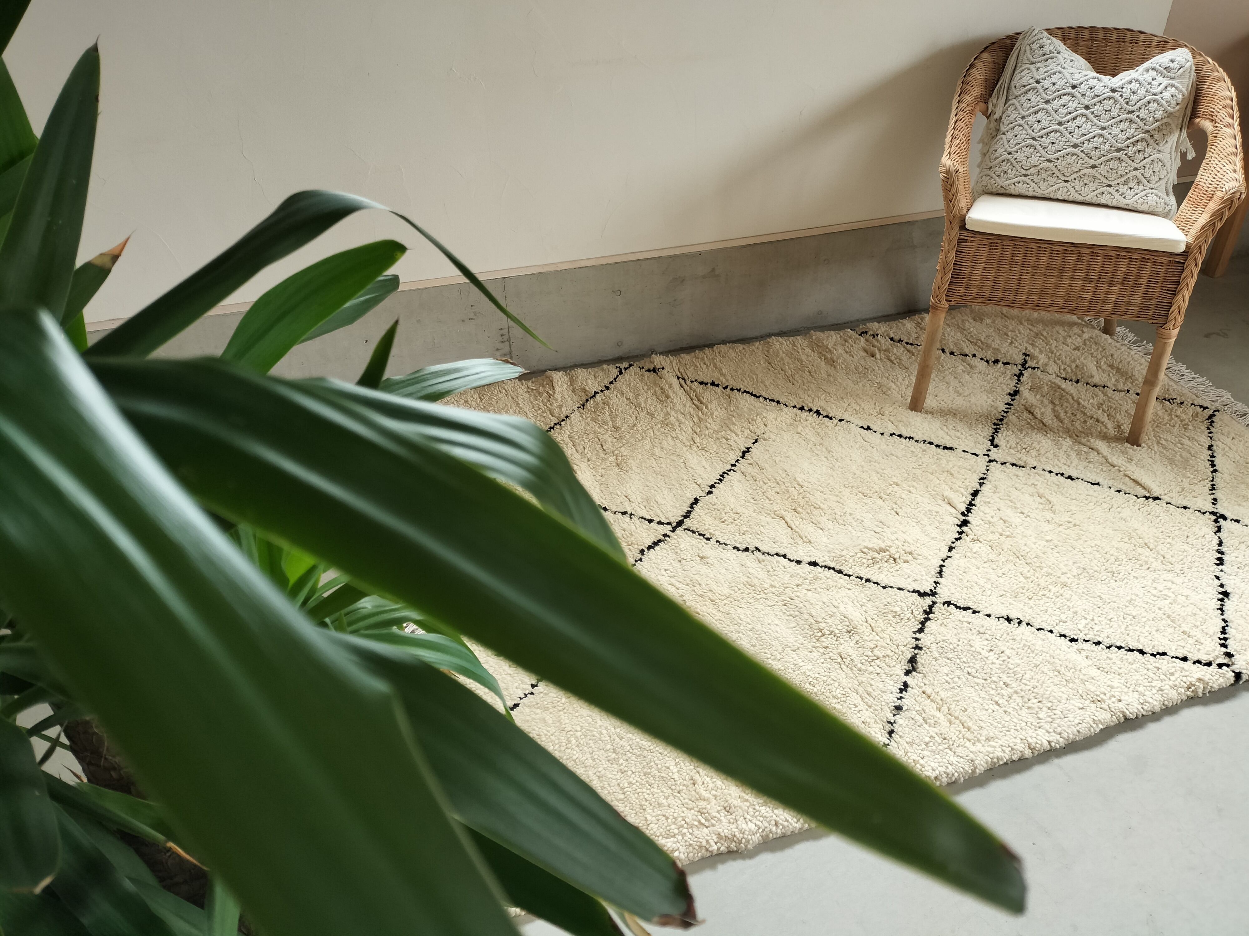 ベニワレンは、モロッコ北部に住むベルベル民族によって作られる手織りのラグです。高地アトラス山脈の良質なウールを紡ぎ、ベルベル民族の女性により一目一目織られています。