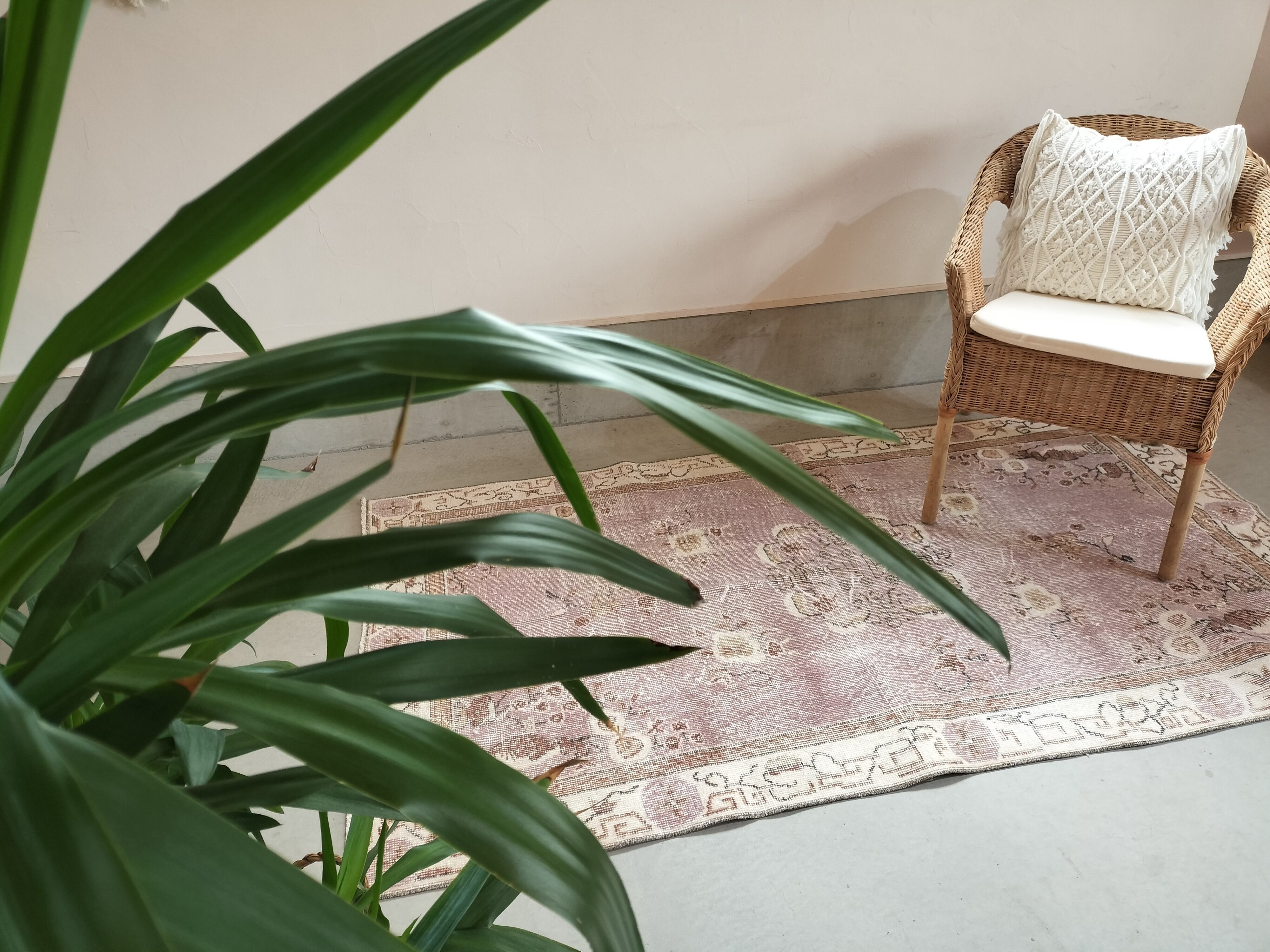 1980年代に織られたヴィンテージのトルコラグ。オーガニックウール、オーガニックコットン(裏糸)を使い、自然染料及び野菜染料で色づけされています。
