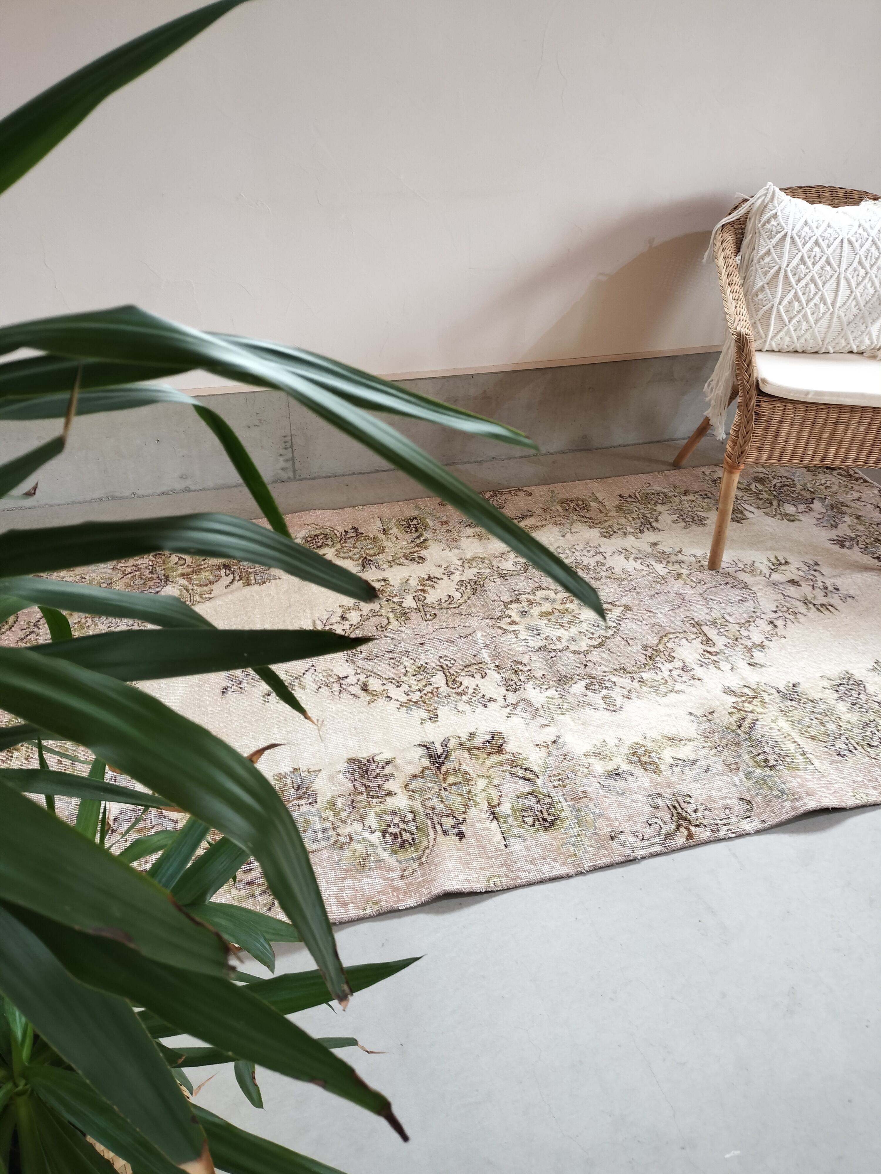 1980年代に織られたヴィンテージのトルコラグ。オーガニックウール、オーガニックコットン(裏糸)を使い、自然染料及び野菜染料で色づけされています。