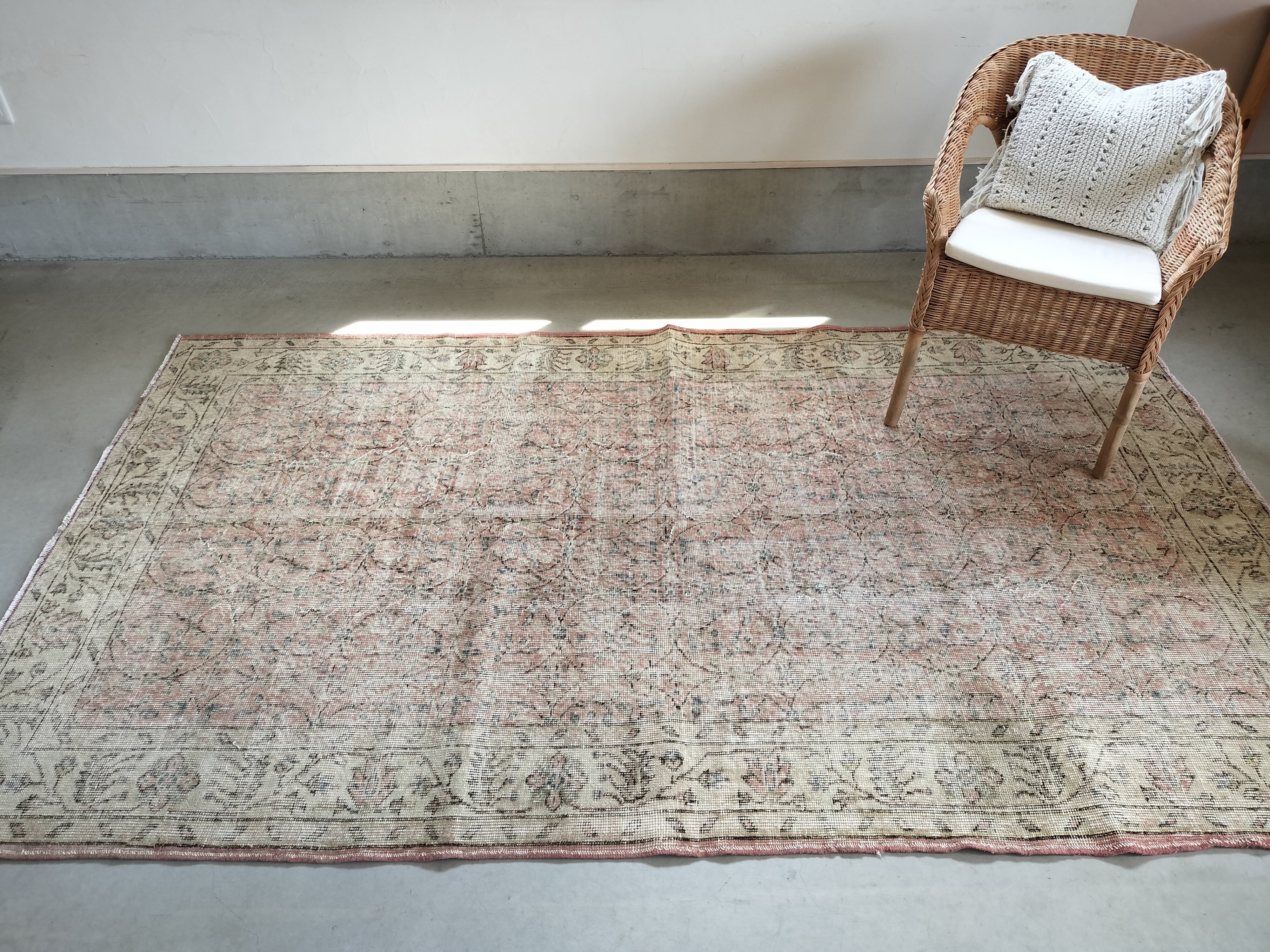 1980年代に織られたヴィンテージのトルコラグ。オーガニックウール、オーガニックコットン(裏糸)を使い、自然染料及び野菜染料で色づけされています。