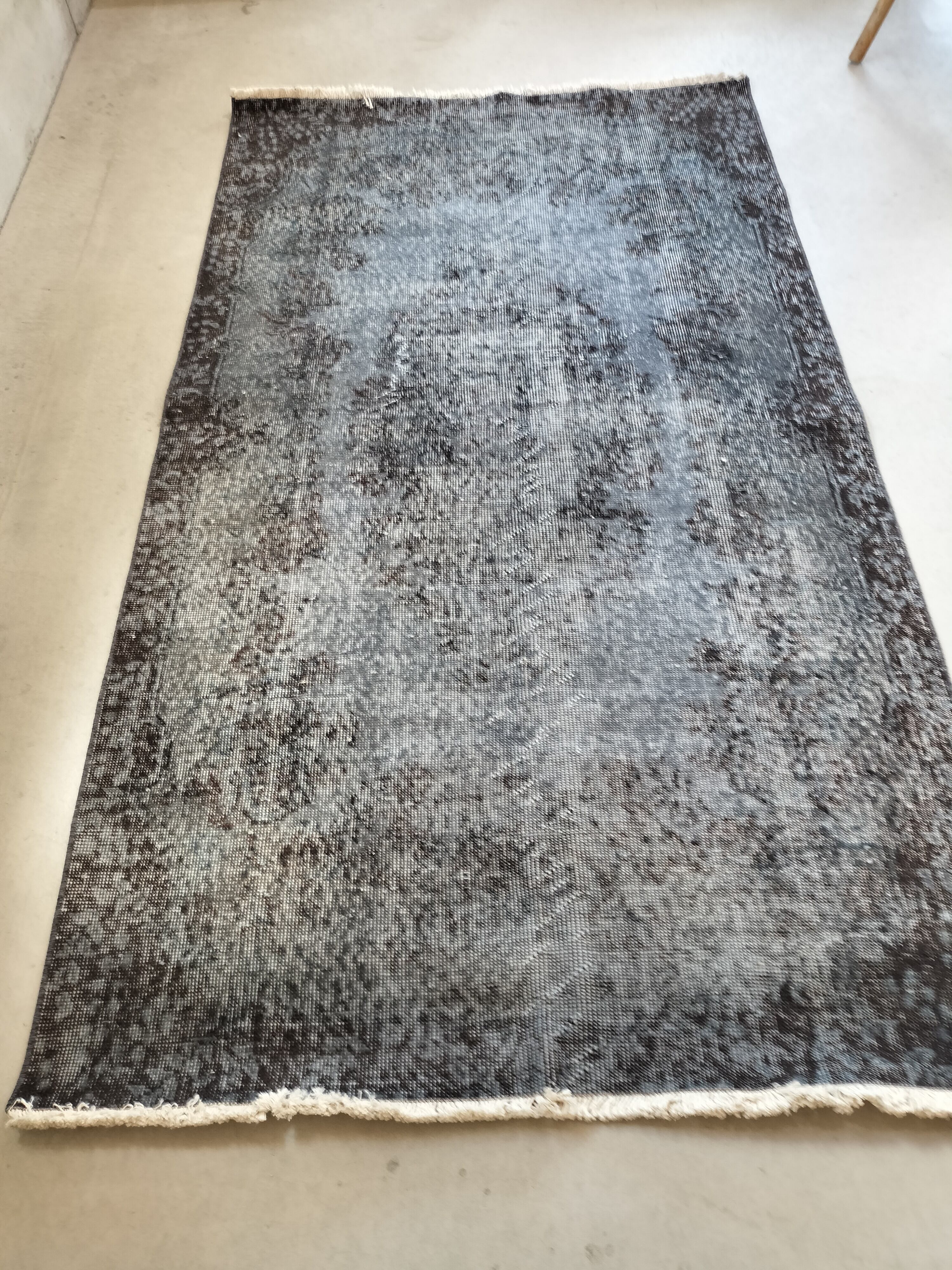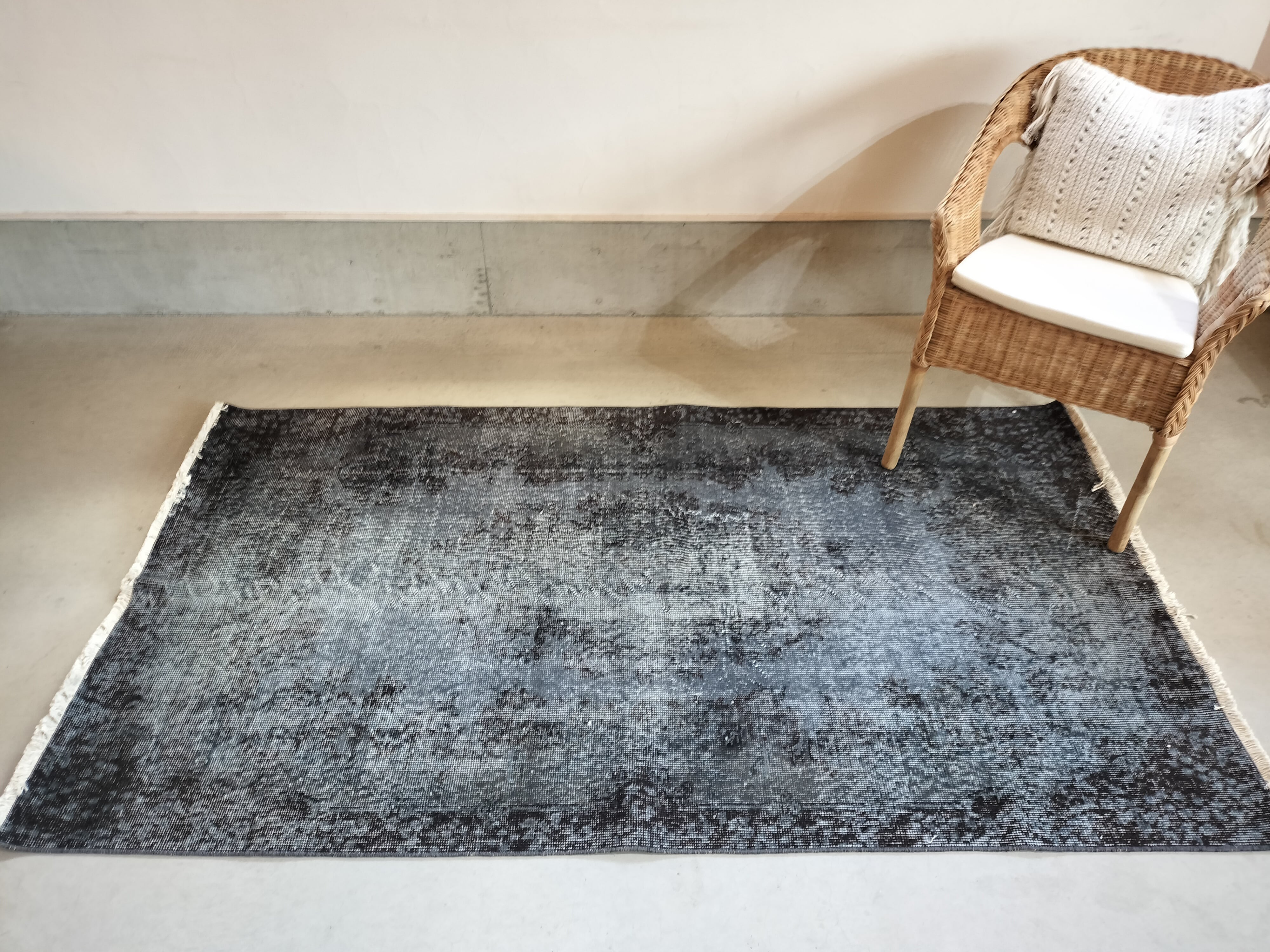 ダークグレーにオーバーダイ(後染め)されたヴィンテージのトルコラグ。少し青みのある濃いめのデニムのような色味です。
