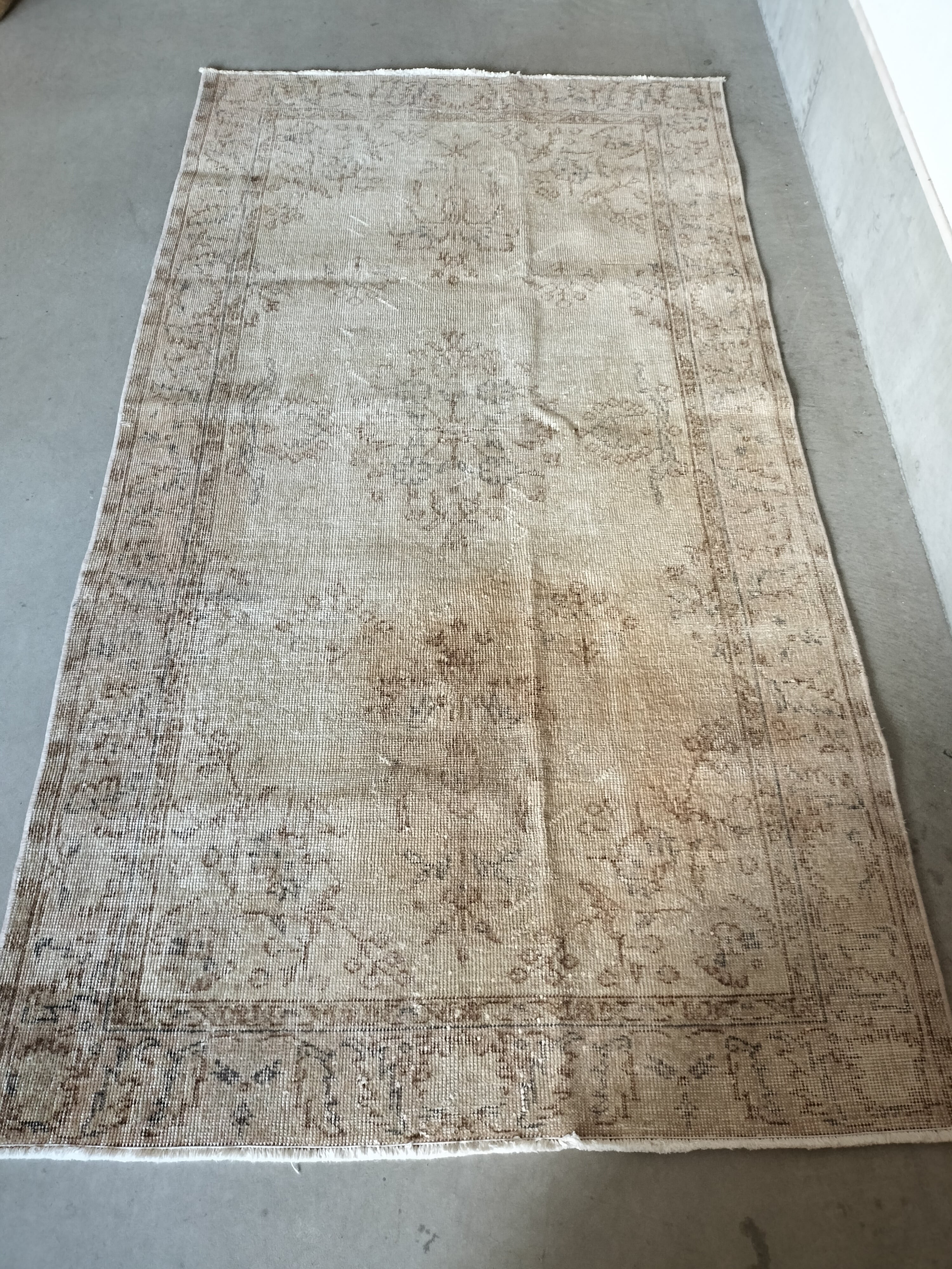 ナチュラルなベージュベースのヴィンテージトルコラグ。