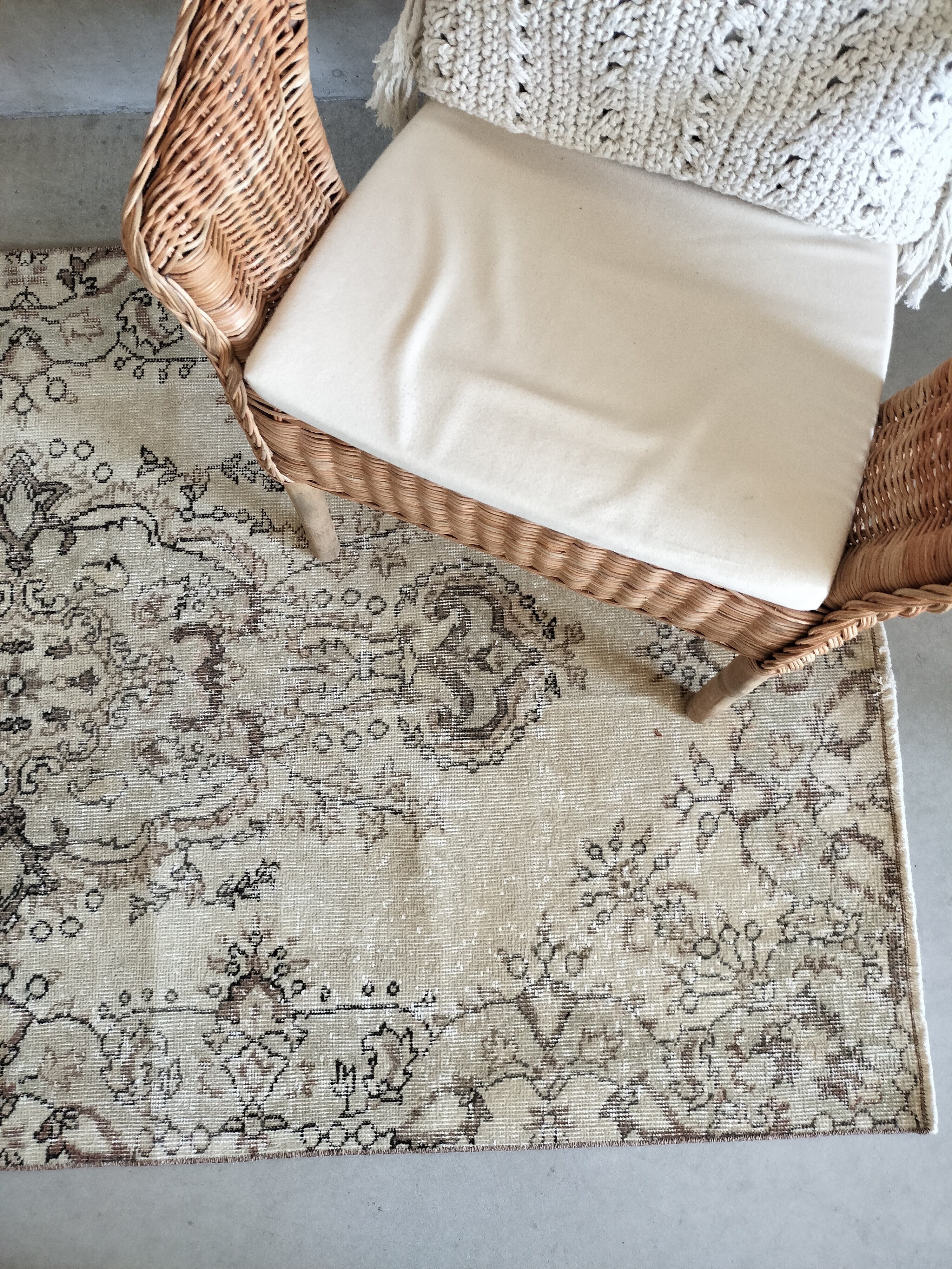 毛足は短くカットされ、季節を問わずにお使いいただけます。アンティークな雰囲気はインドアグリーンやアンティーク家具等とも相性が良さそうです。