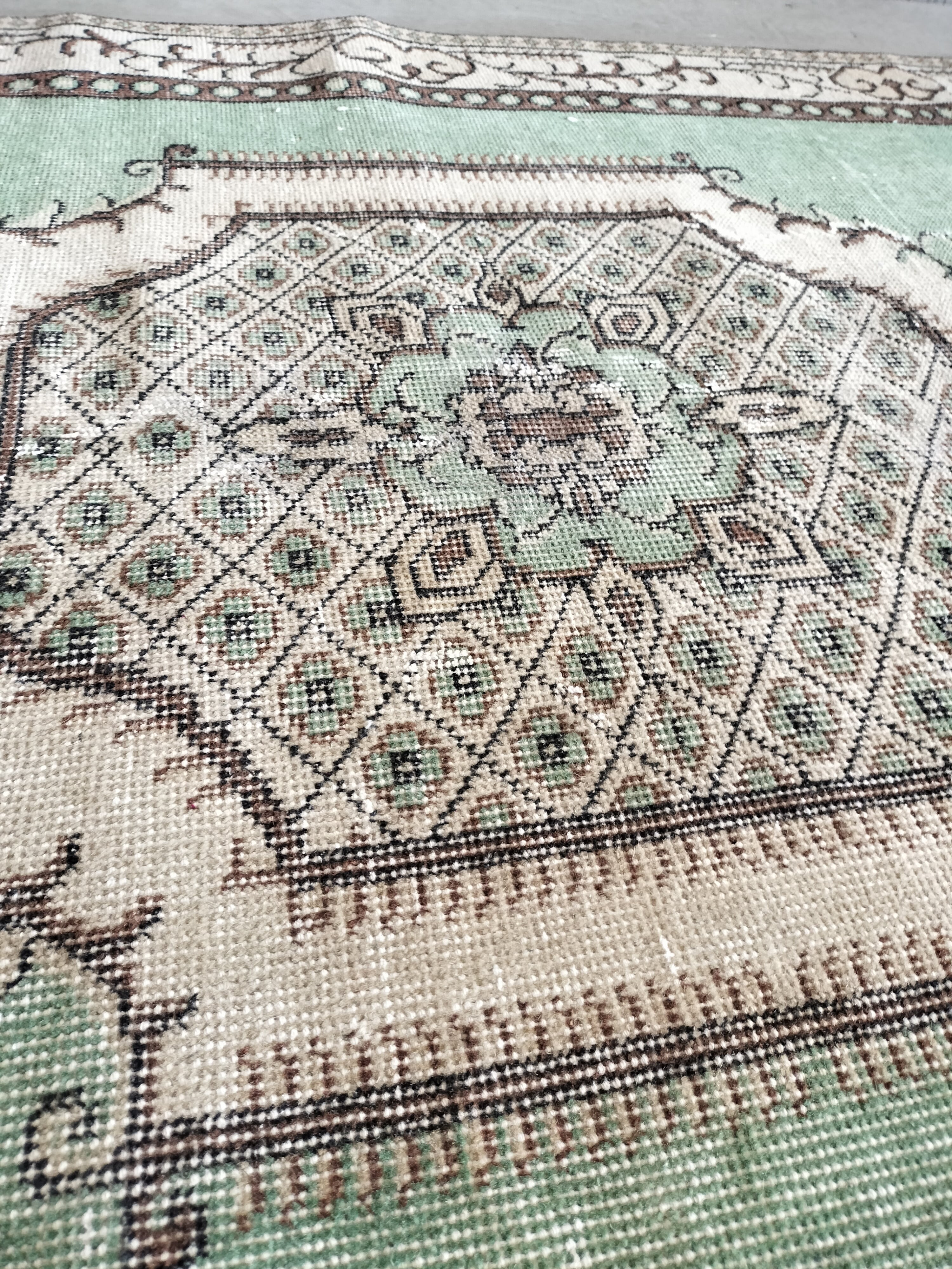 ミントグリーンが爽やかなヴィンテージトルコラグ。