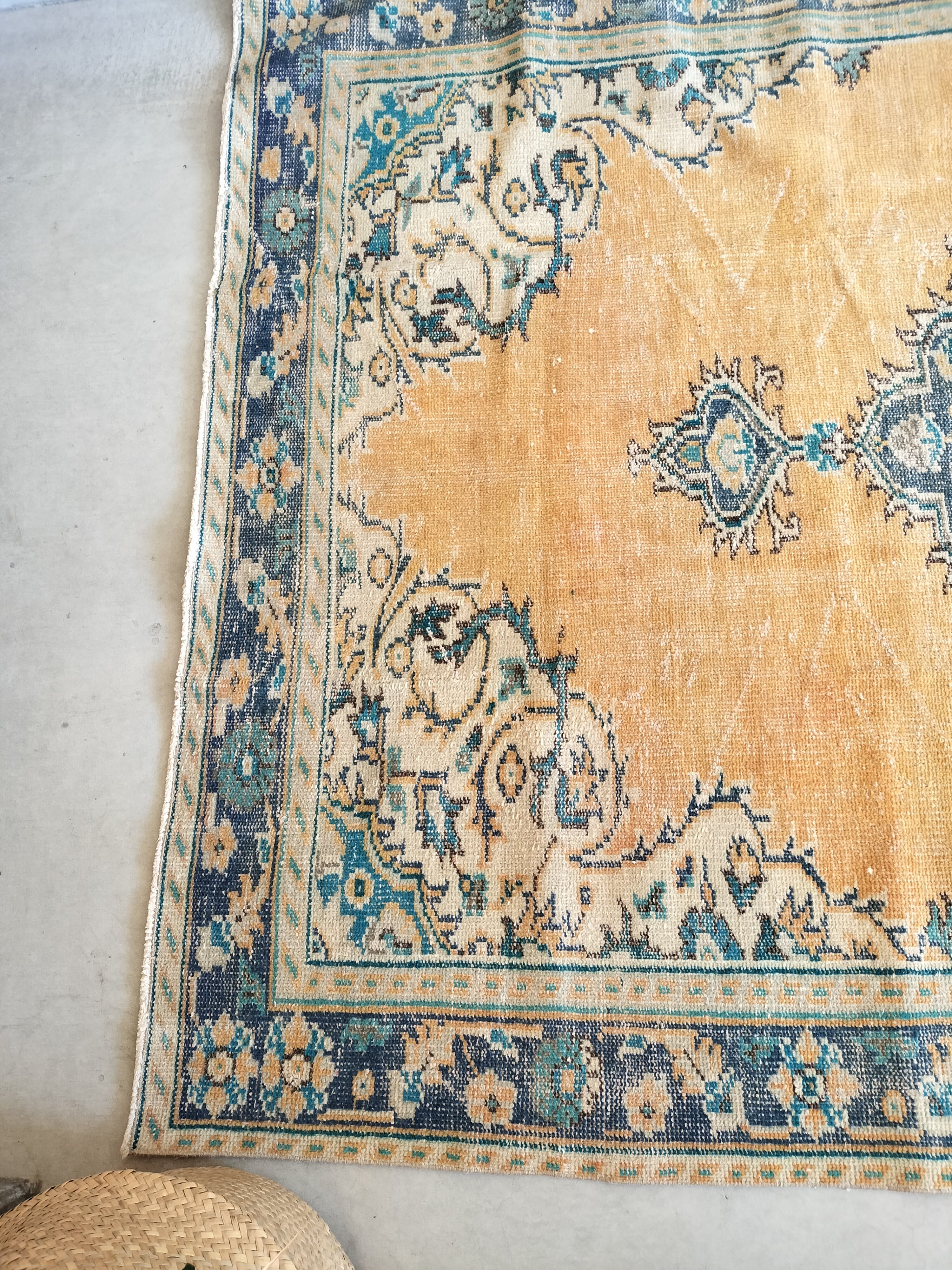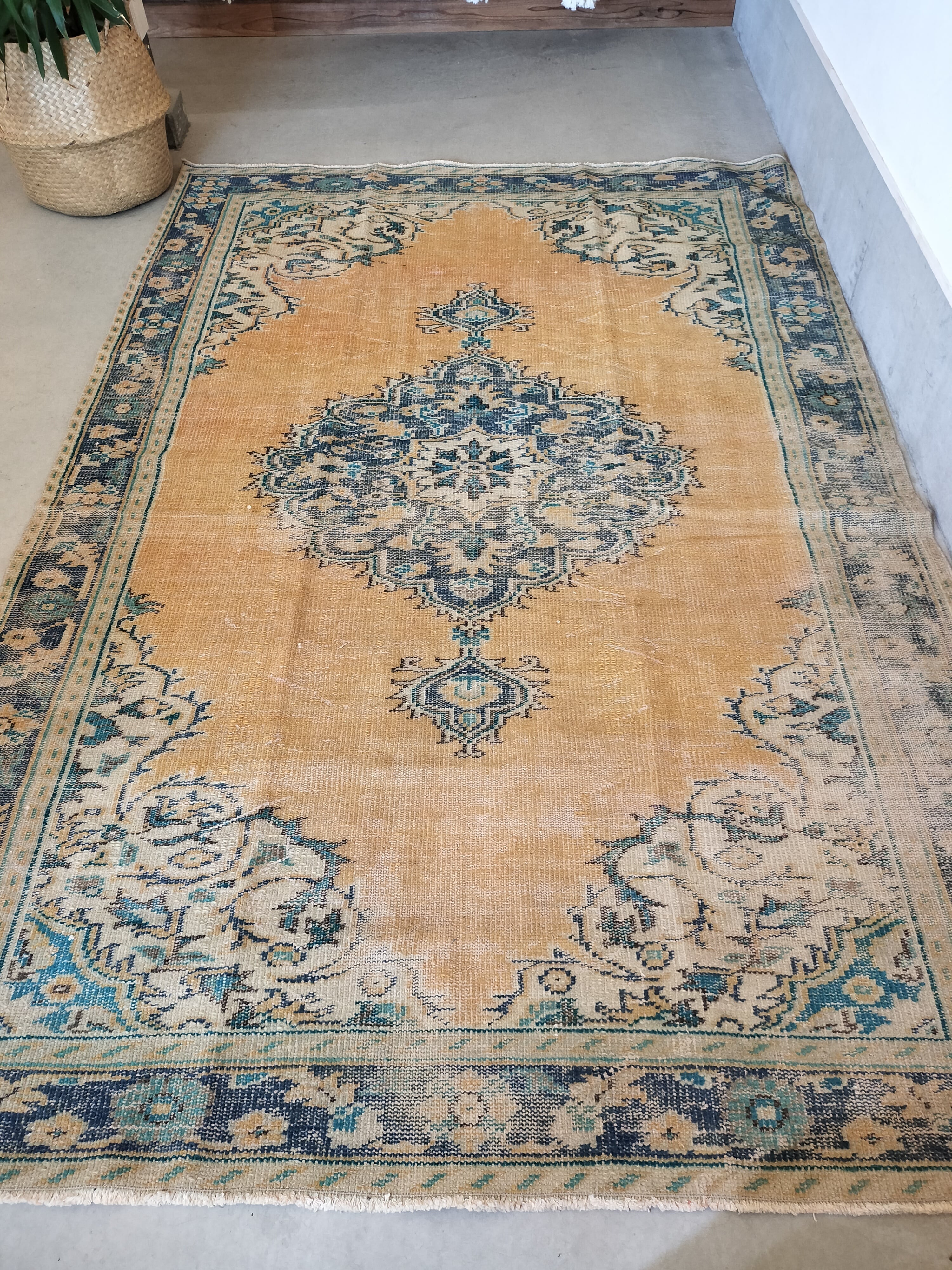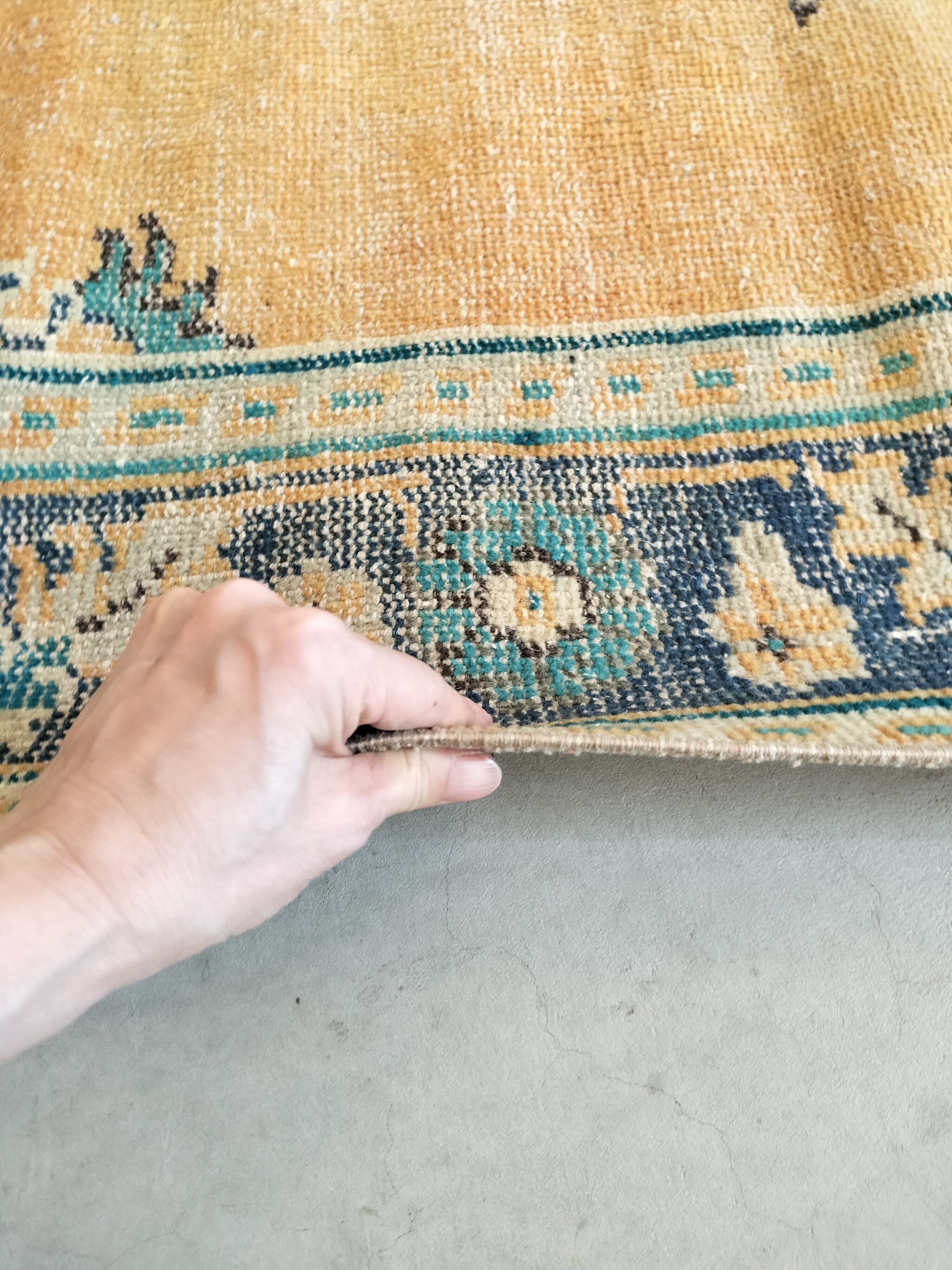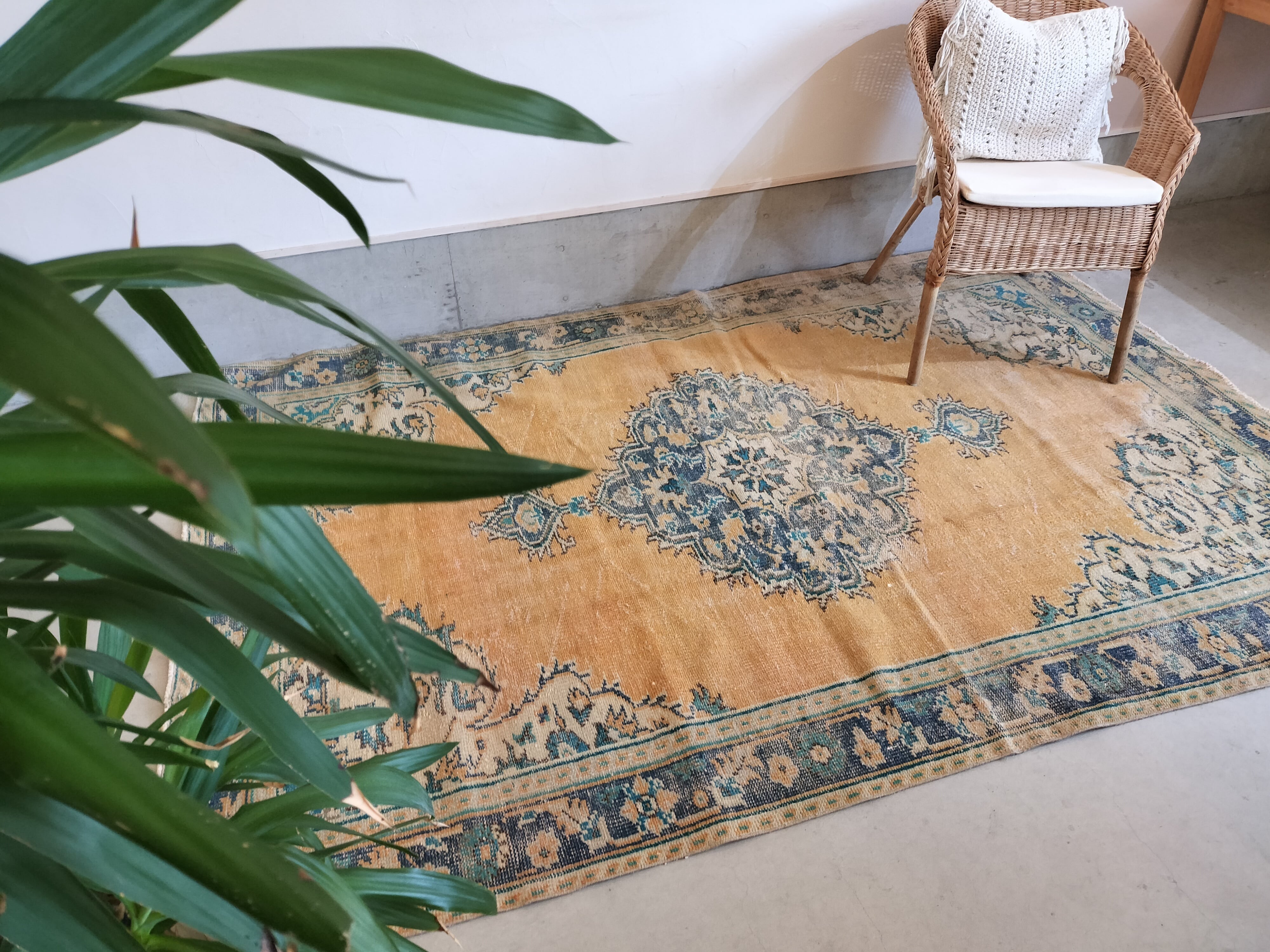 ヴィンテージらしい渋みのあるイエロー系トルコラグ。