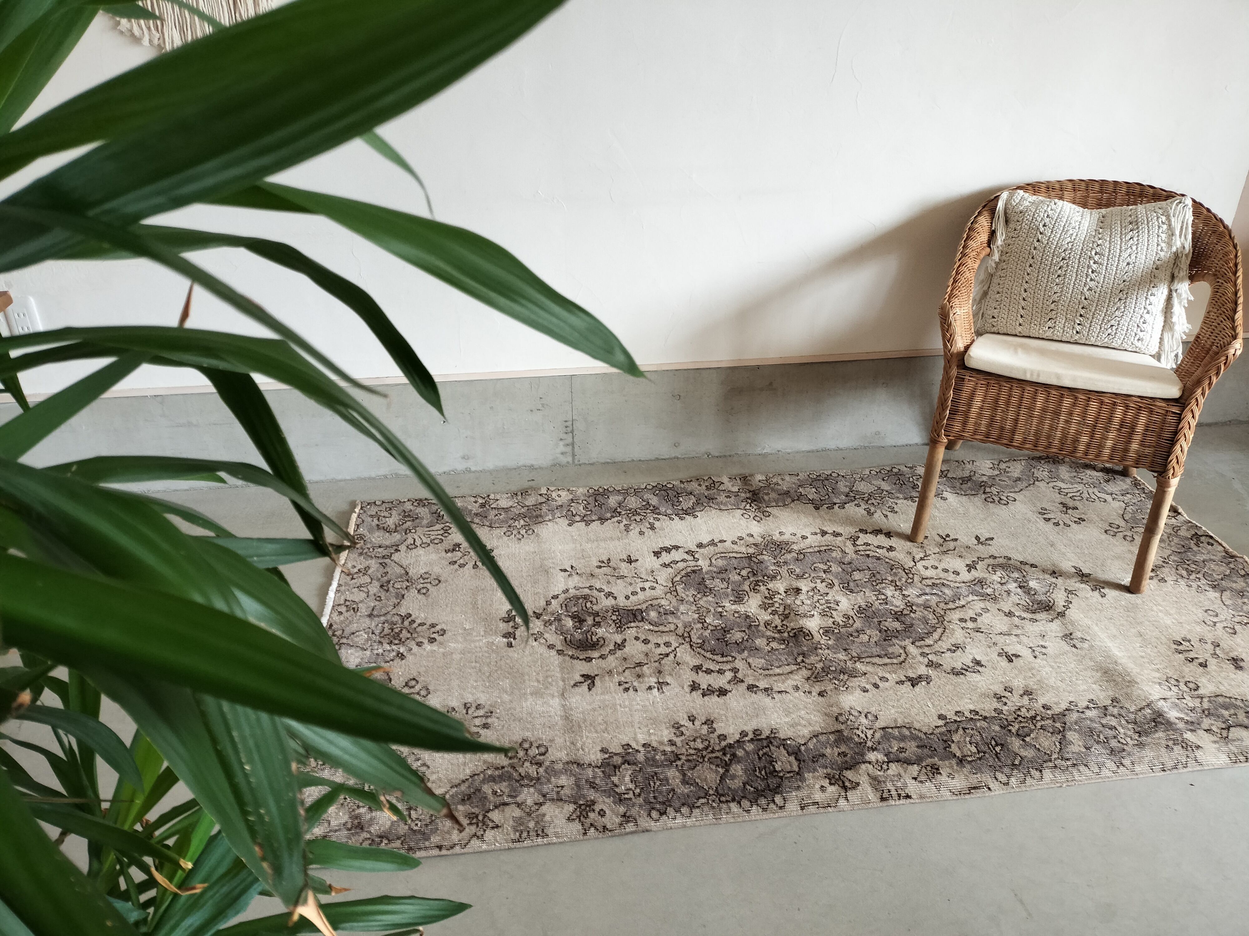 人気の高いグレーオーバーダイのヴィンテージトルコラグ。
