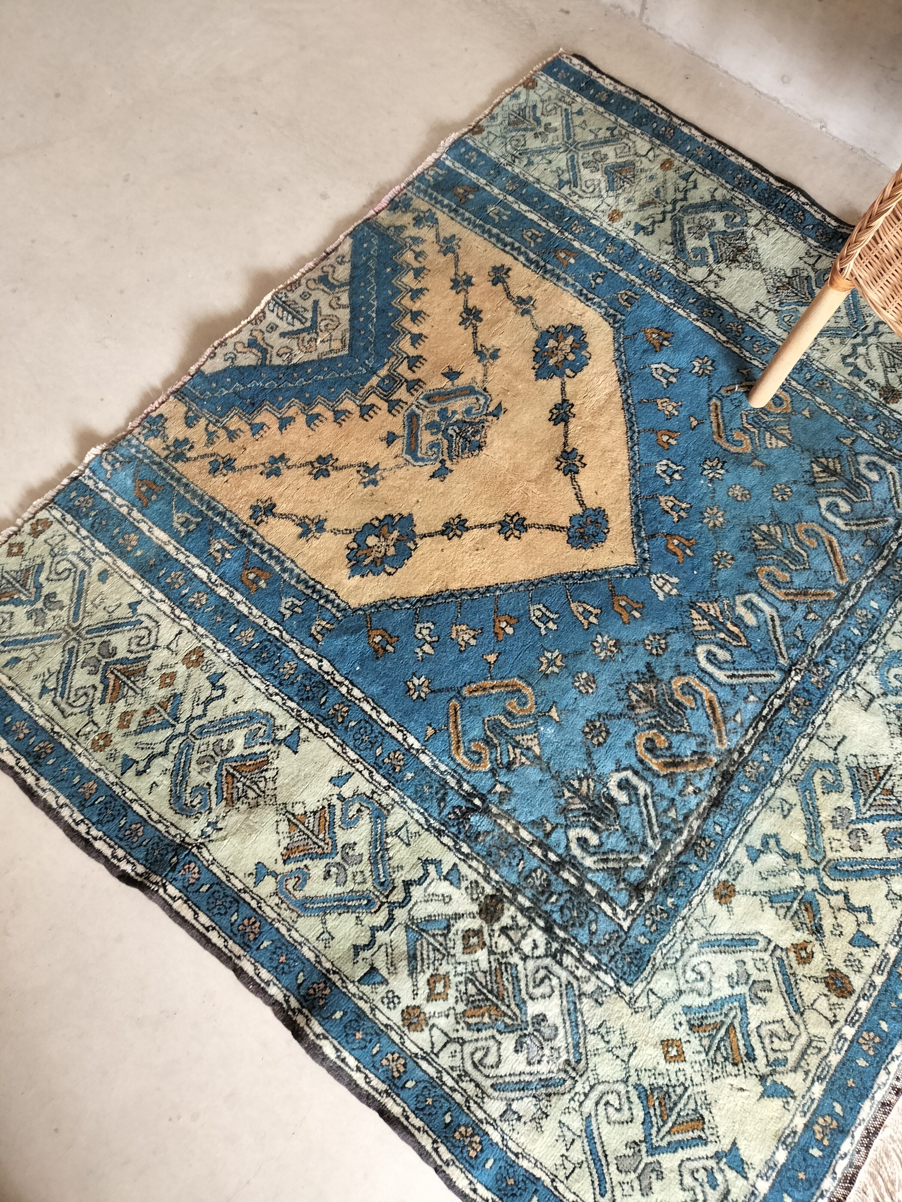 1980年代に織られたヴィンテージのトルコラグ。オーガニックウール、オーガニックコットン(裏糸)を使い、自然染料及び野菜染料で色づけされています。