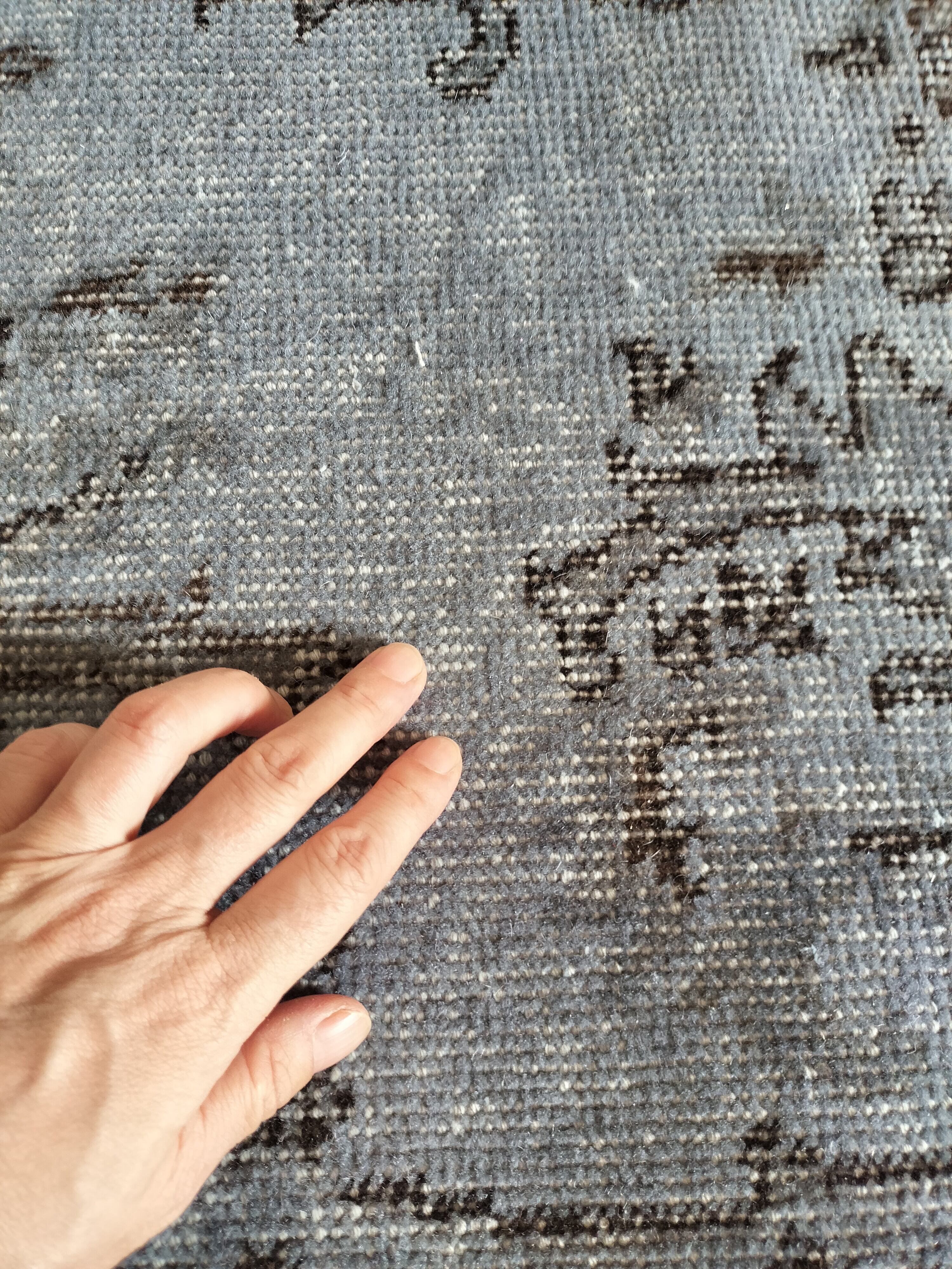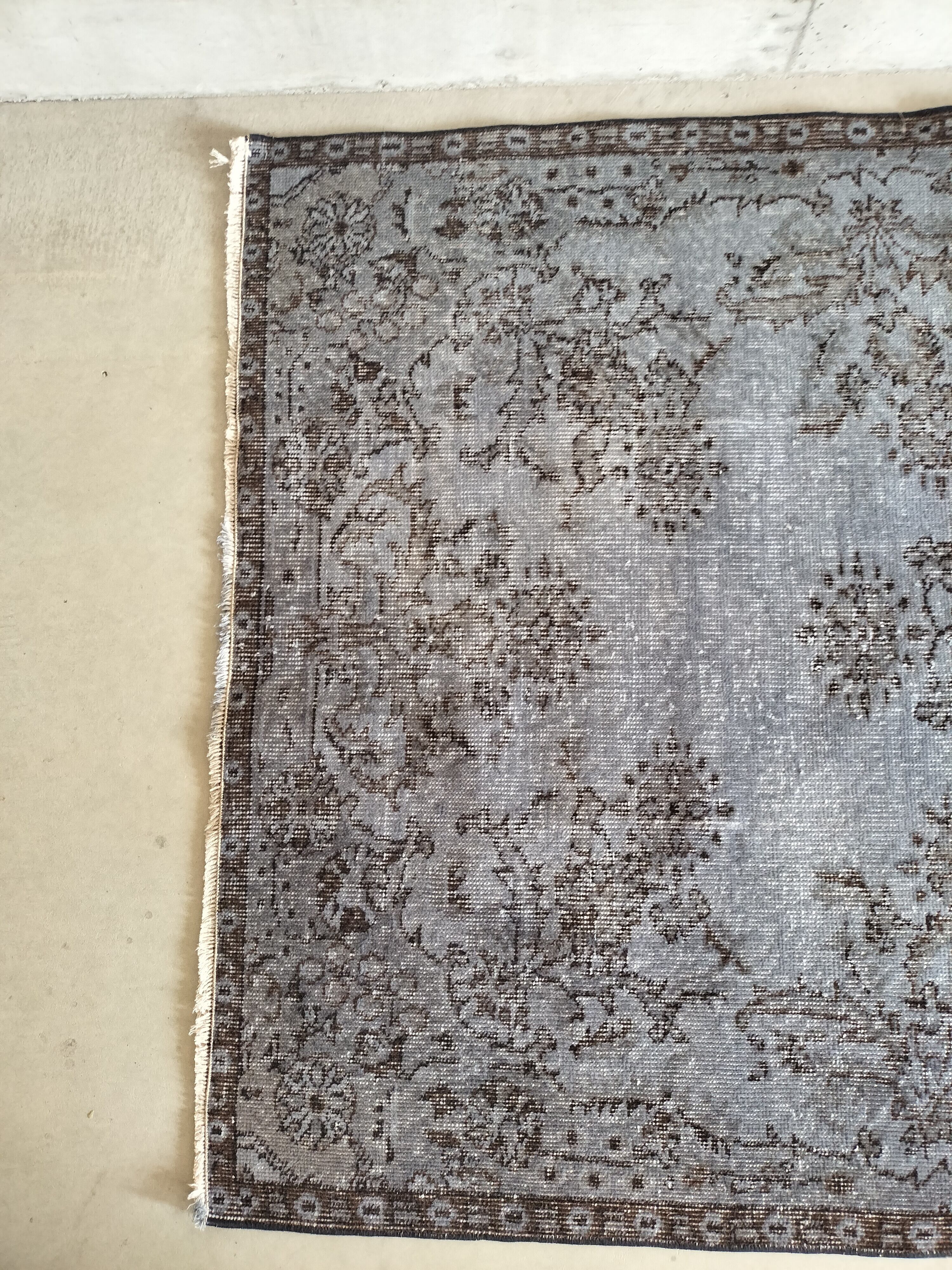 ダークグレーにオーバーダイ(後染め)されたヴィンテージのトルコラグ。