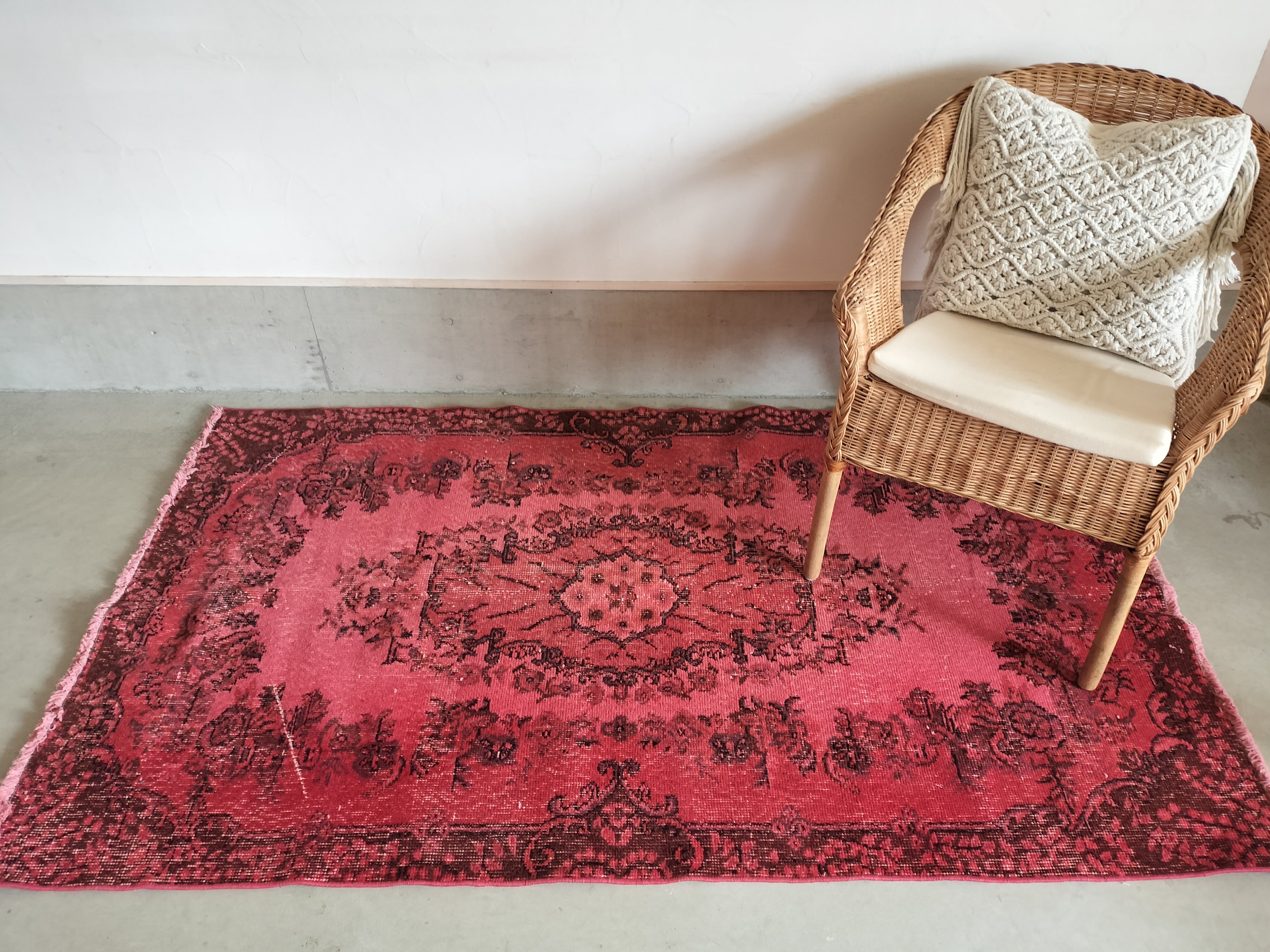 ダークレッドでオーバーダイされた定番柄のラグ。