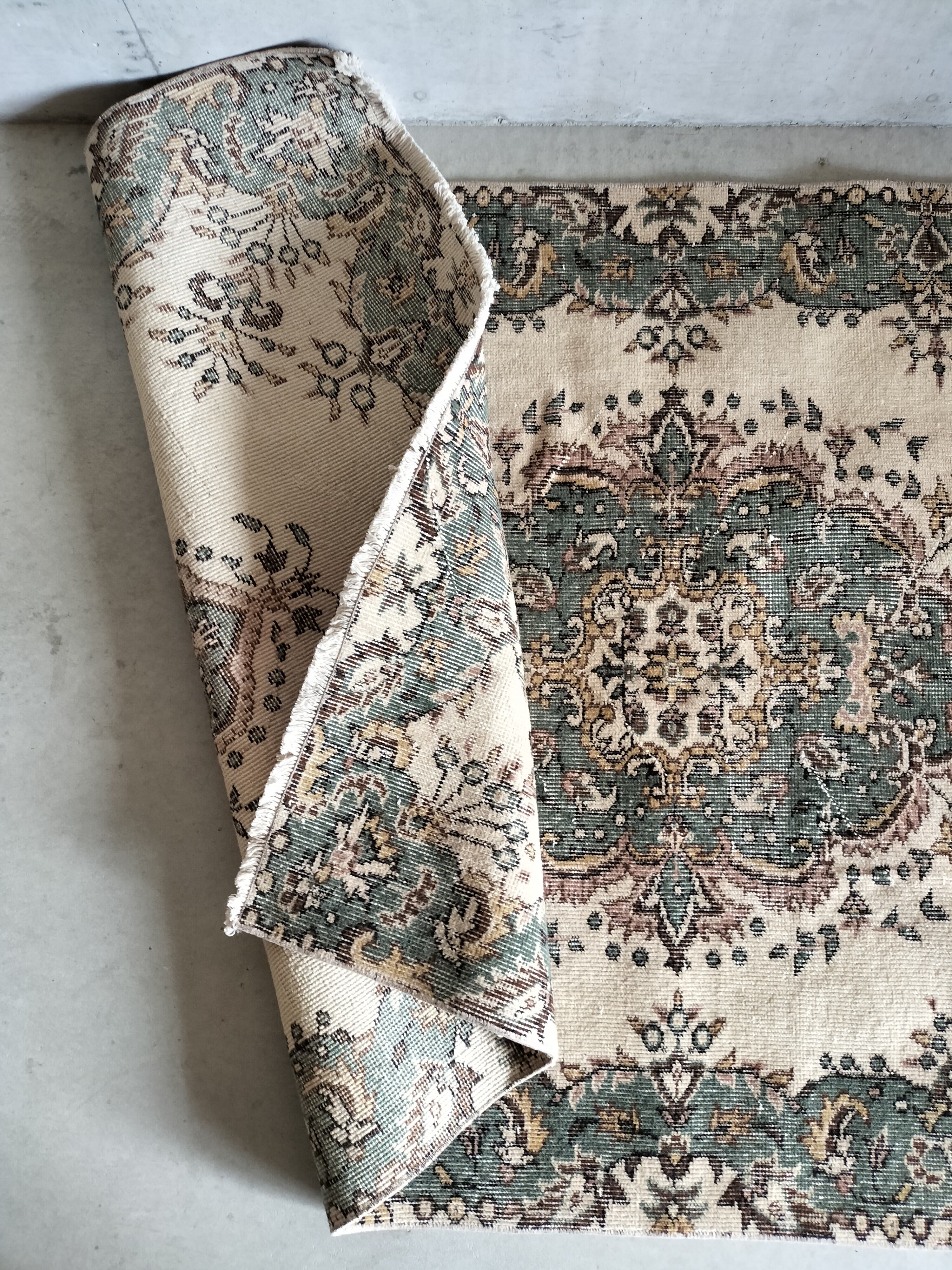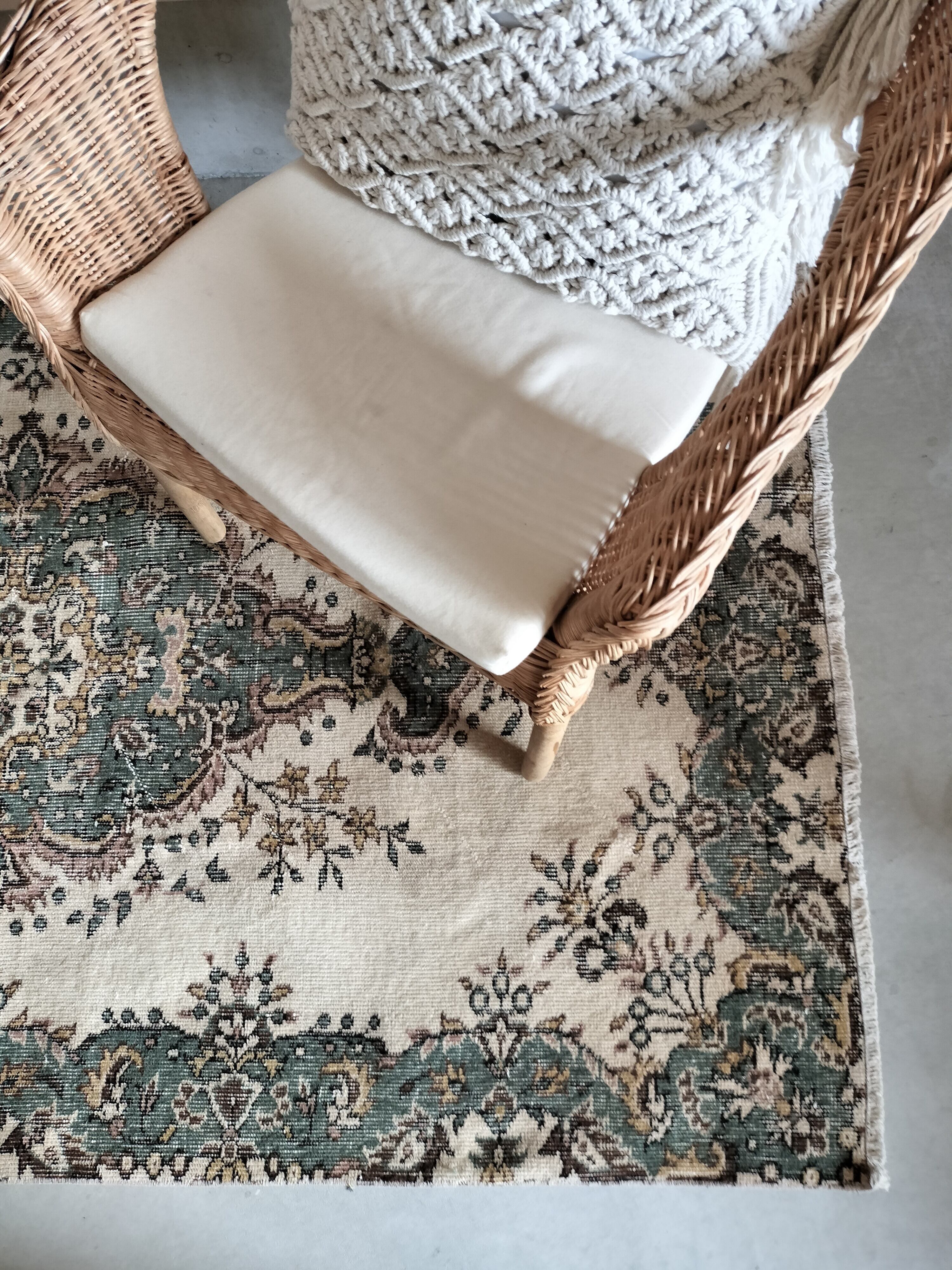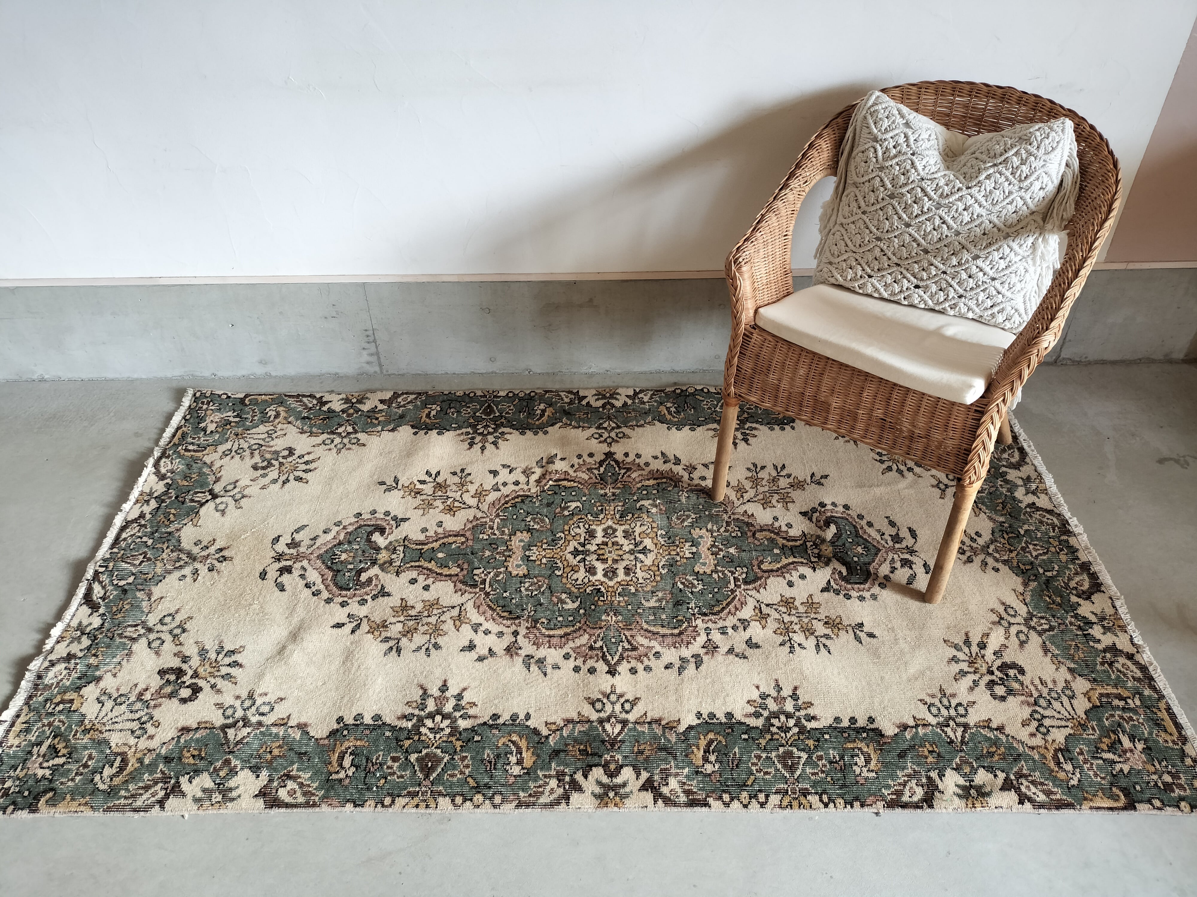 ヴィンテージラグらしい存在感のある色味が特徴のトルコラグ。