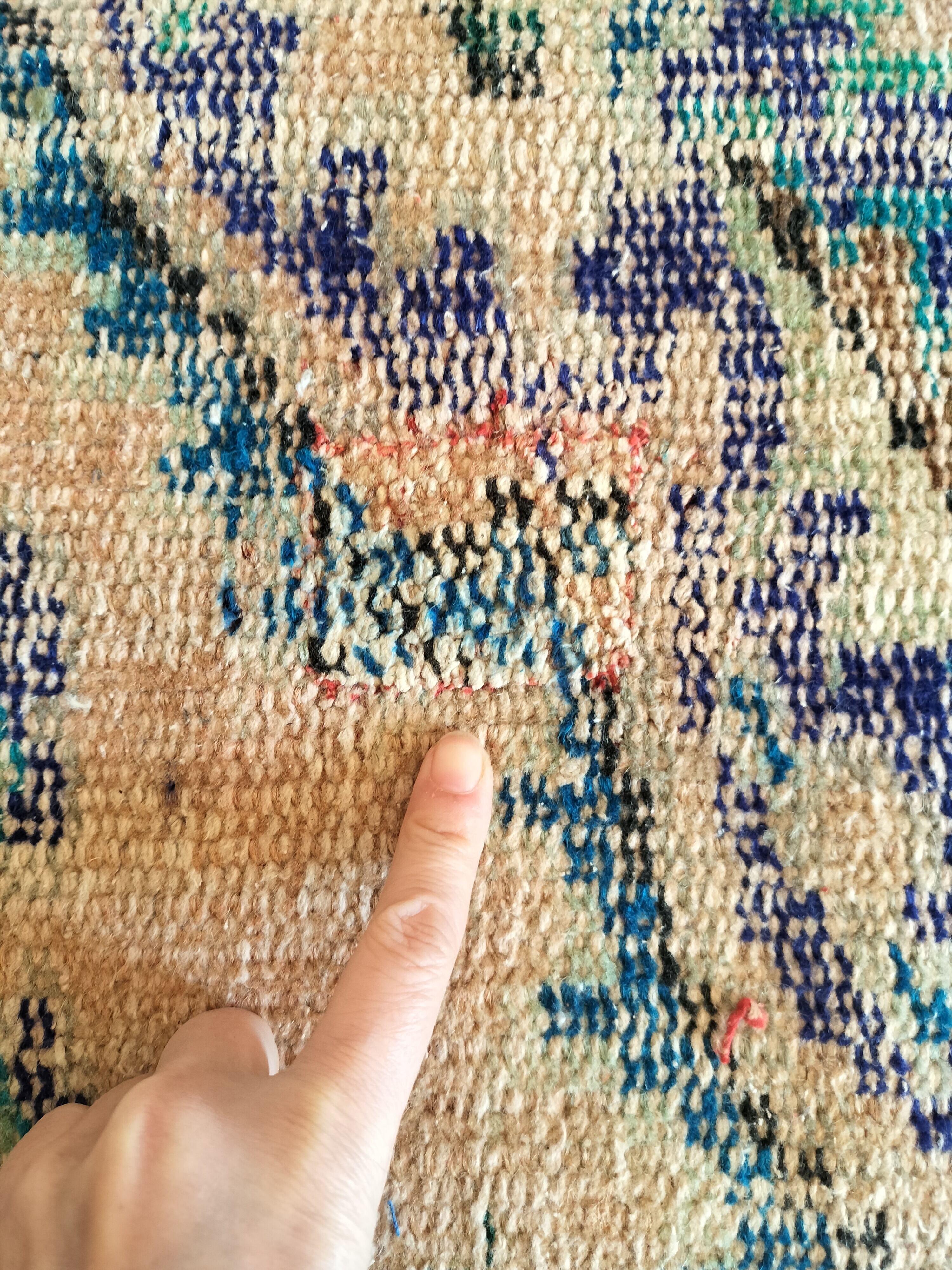 6✕5cm程の修復の跡があり、綺麗にお治しが施されています。最後のお写真の指先をご確認ください。ヴィンテージのため擦れや経年変化がありますことをご了承ください。