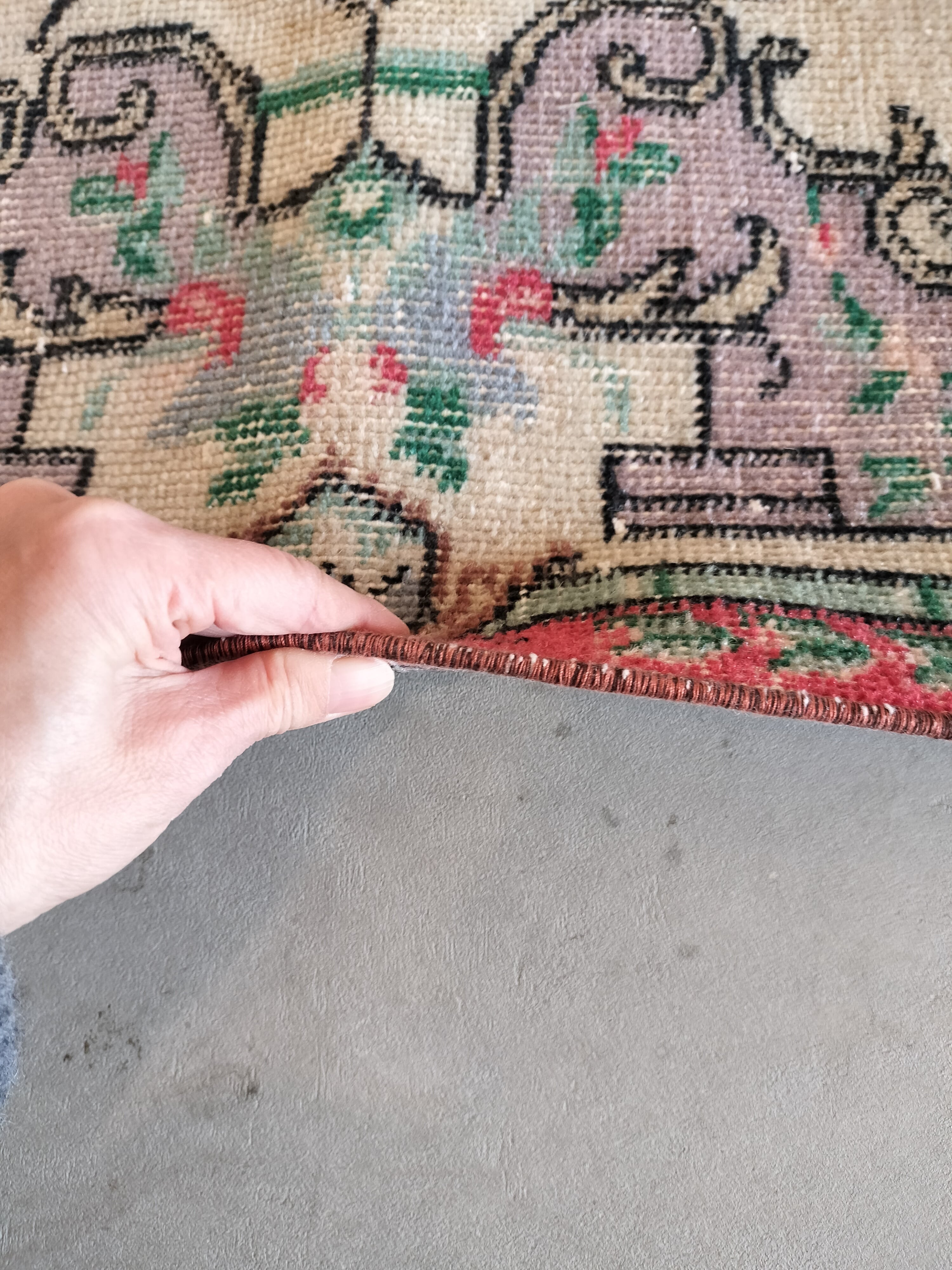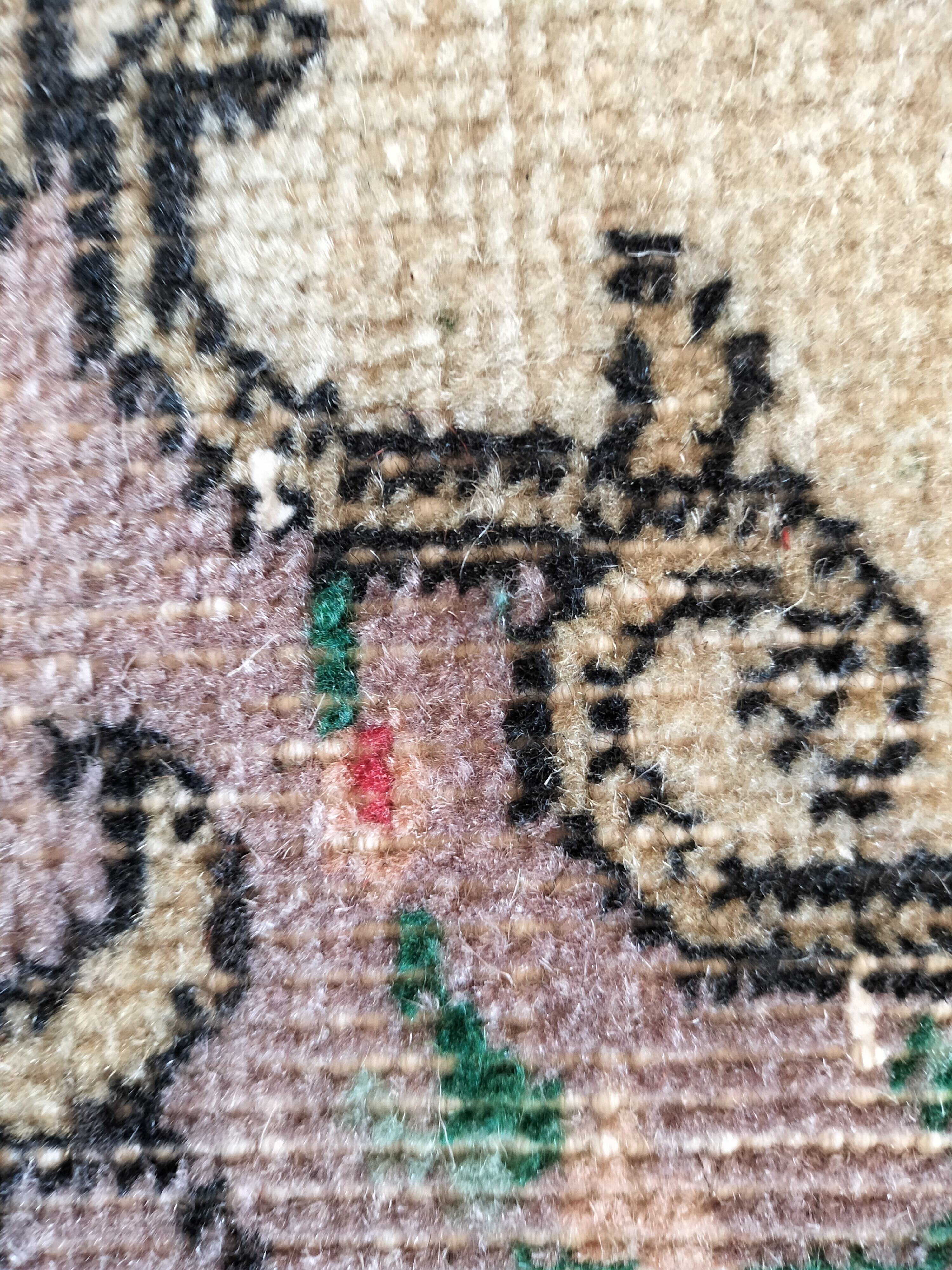 1980年代に織られたヴィンテージのトルコラグ。オーガニックウール、オーガニックコットン(裏糸)を使い、自然染料及び野菜染料で色づけされています。