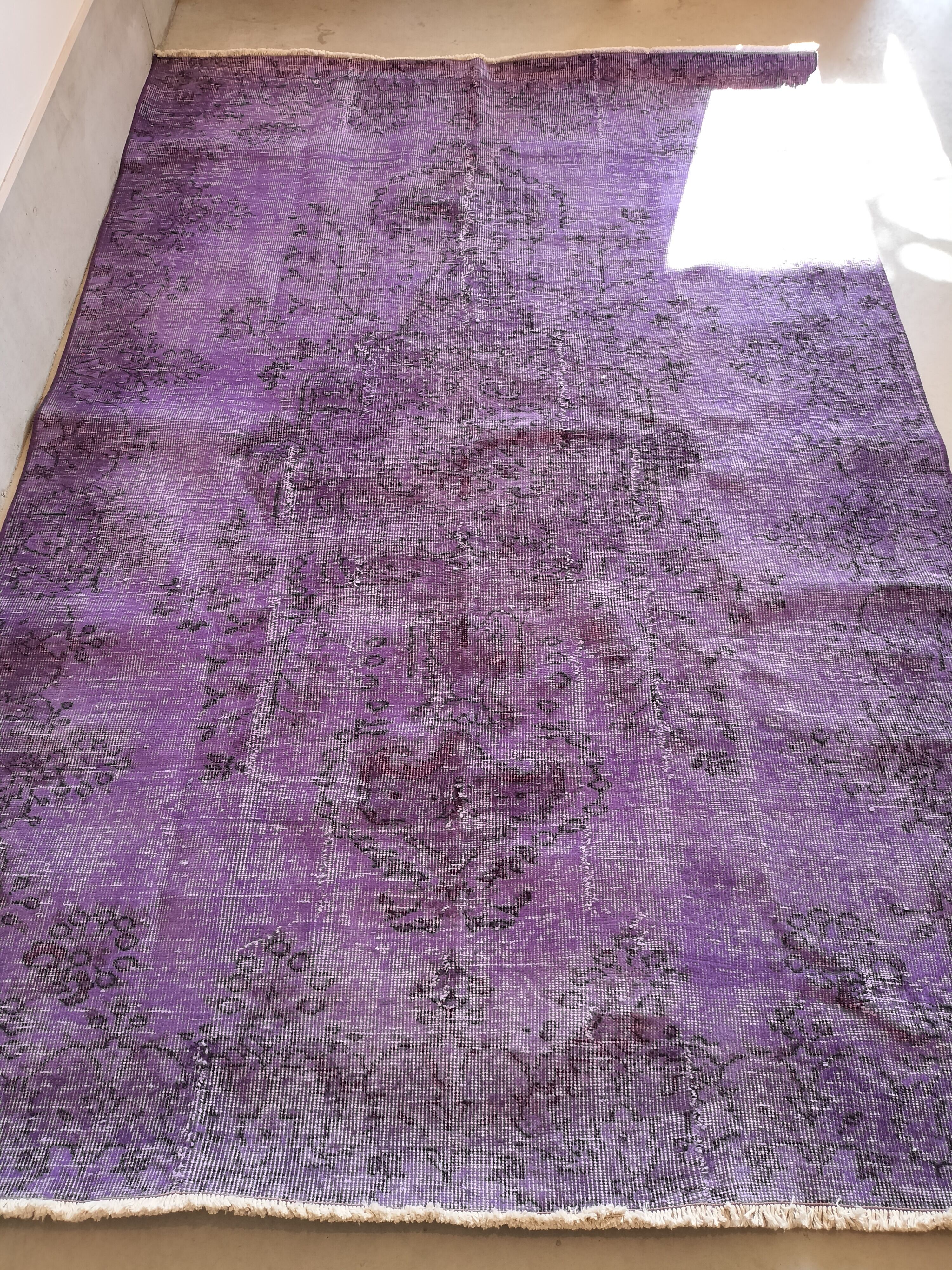 濃いめのバイオレットパープルでオーバーダイされたヴィンテージトルコラグ。