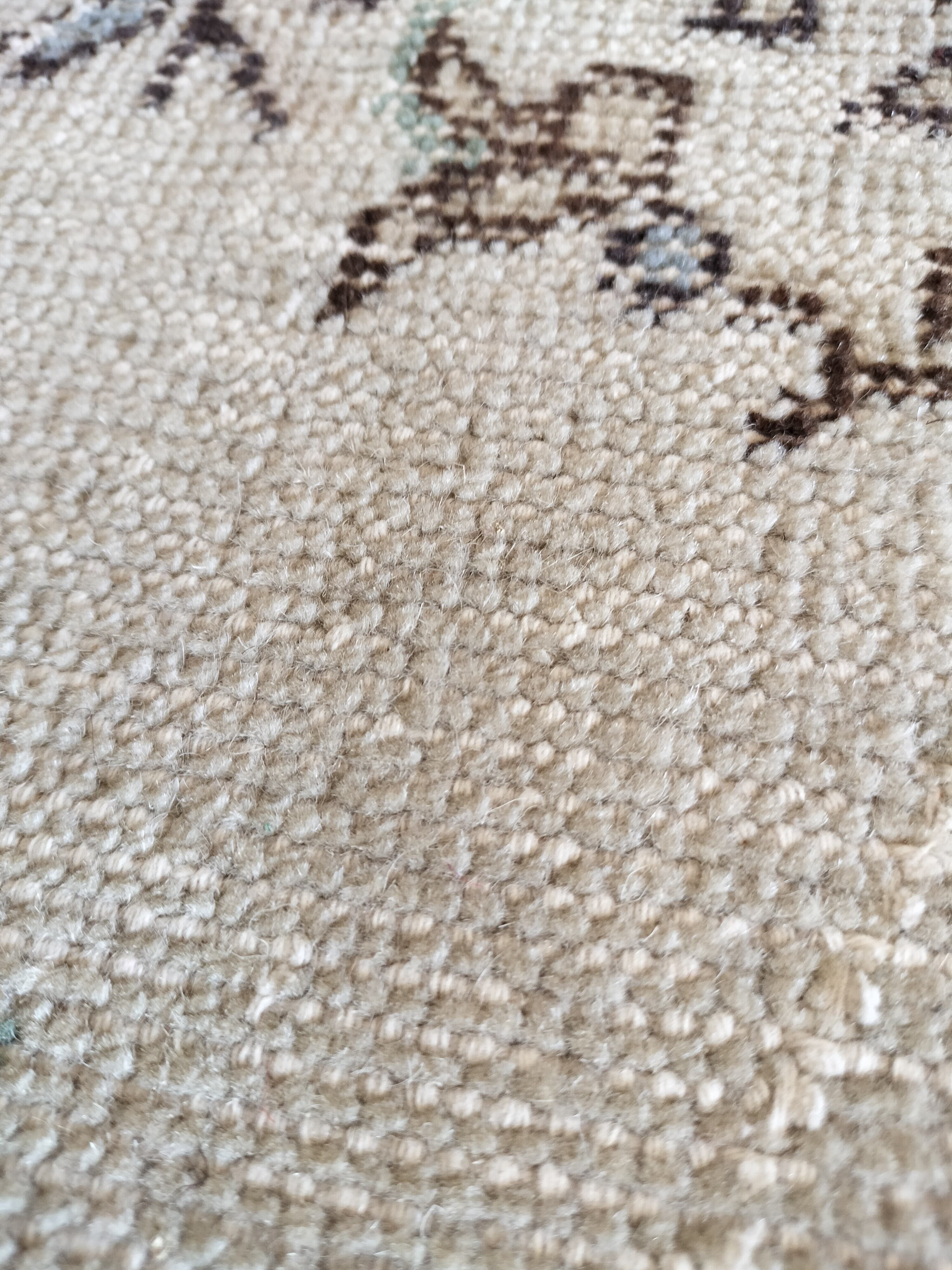 落ち着いた印象のダークベージュが美しいヴィンテージトルコラグ。