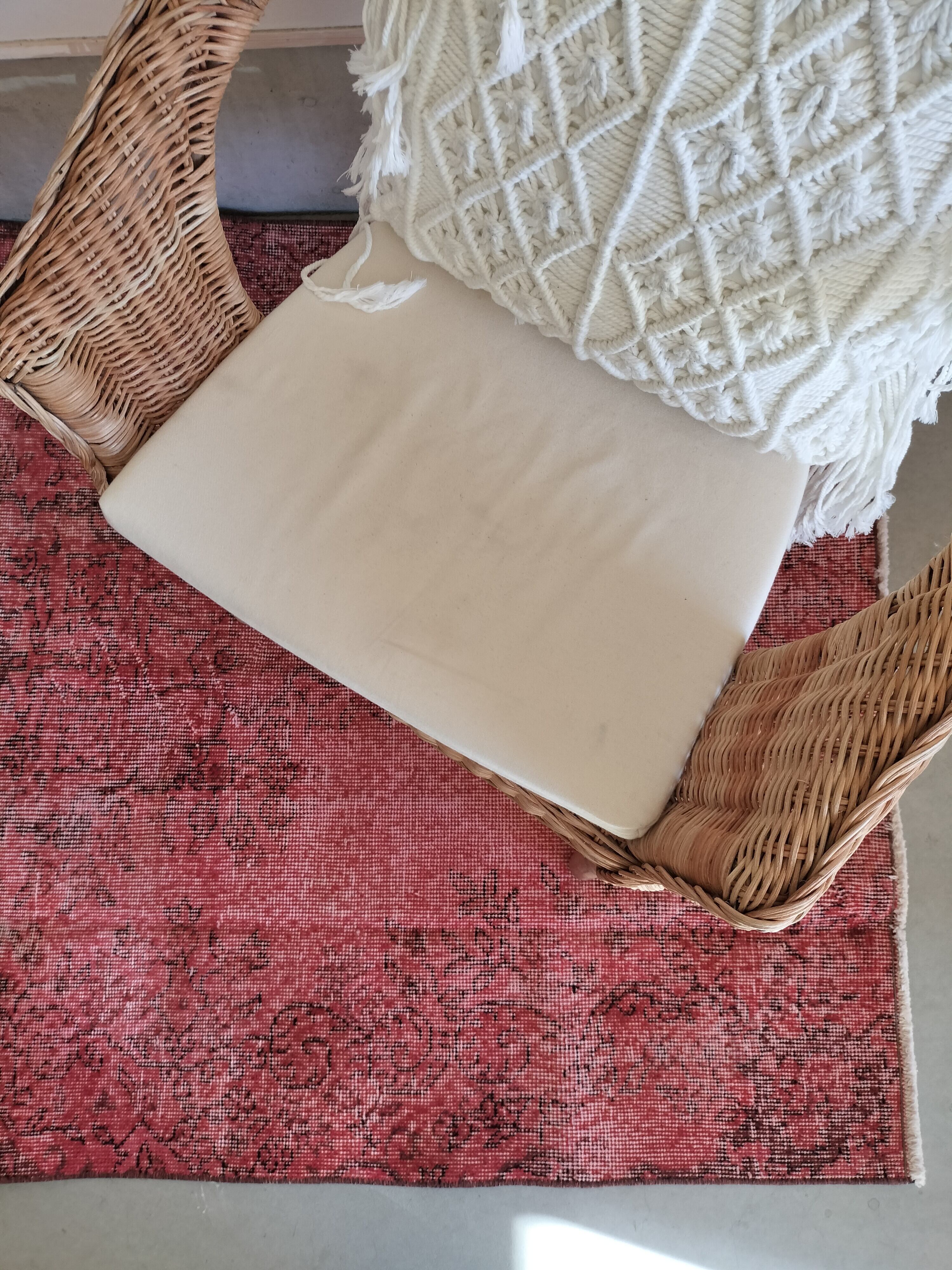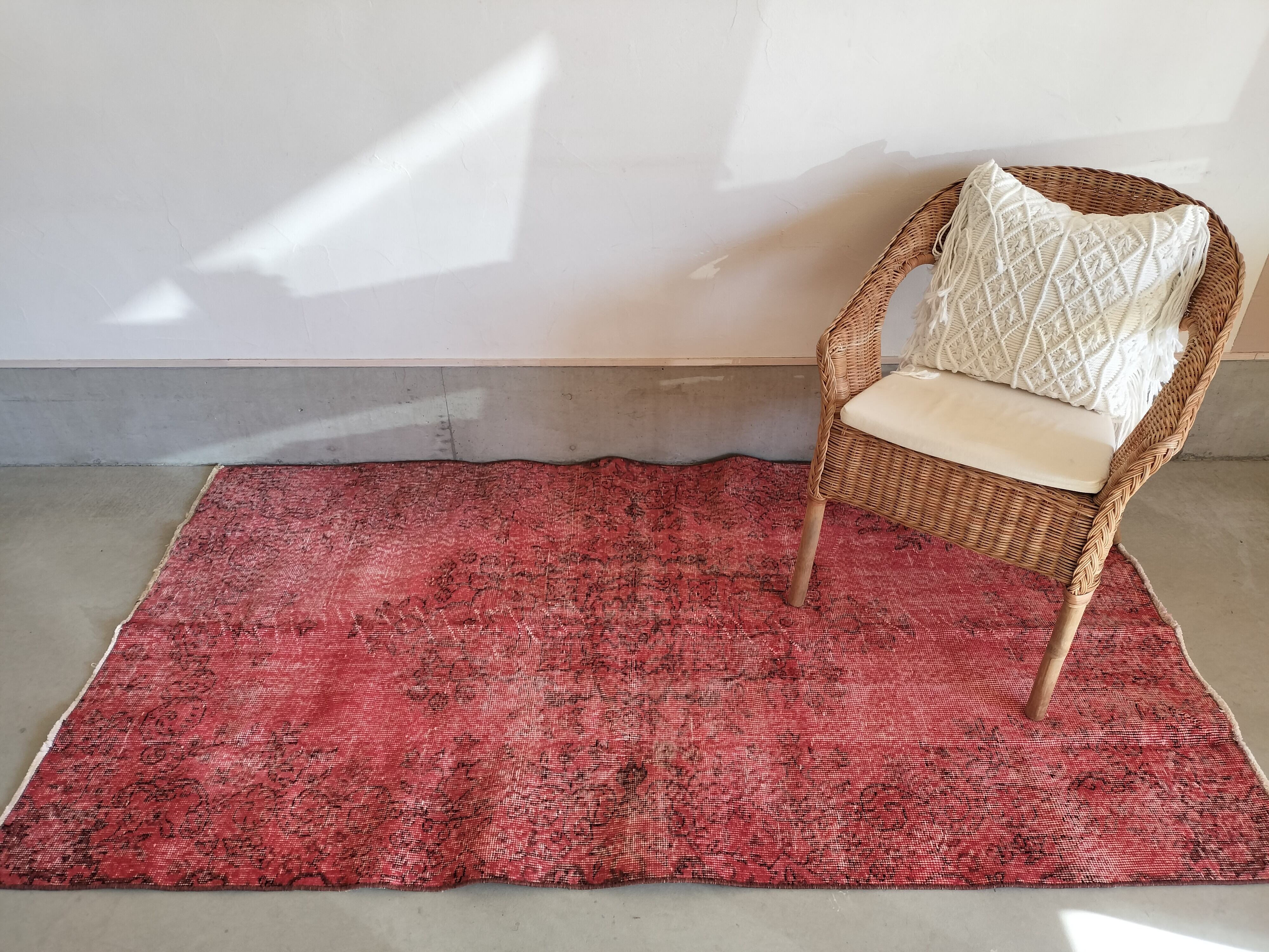 ダークレッドが美しいヴィンテージラグ。オーバーダイ(後染め)のラグです。